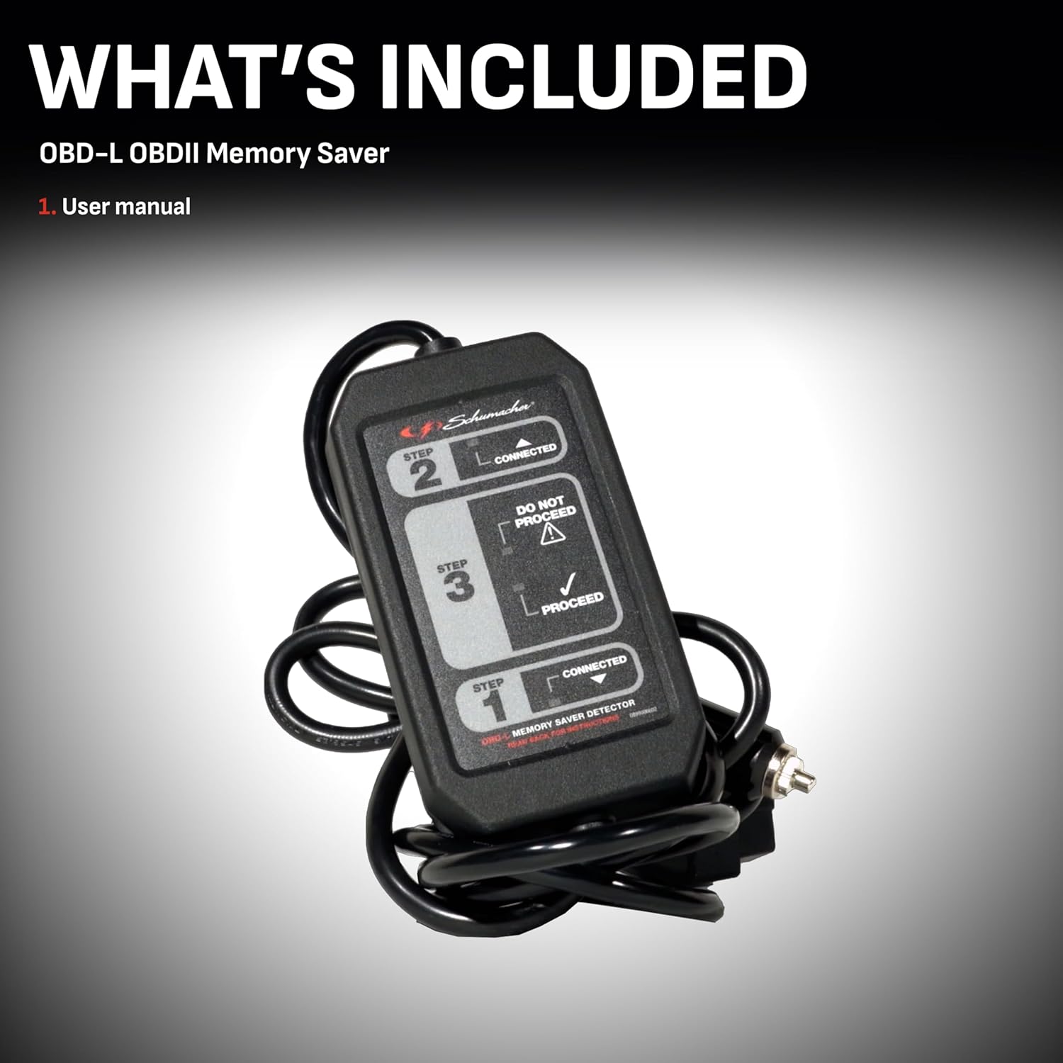 Schumacher Electric Automotive Memory Saver, OBD-L, for Cars, Trucks, SUVs and More, Saves Your Vehicle’s Settings During Battery Maintenance or Removal, OBDII Compatible