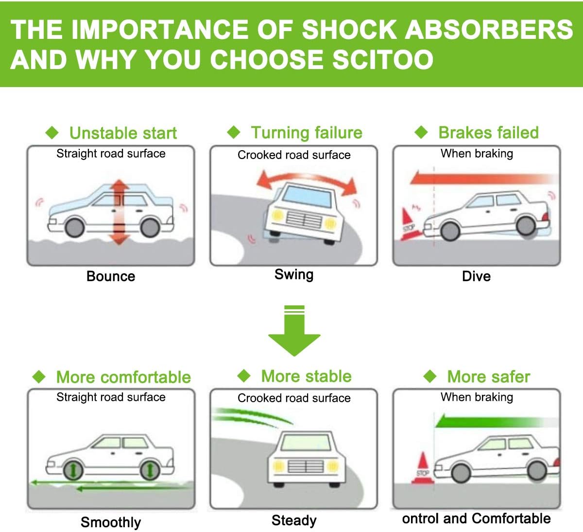 Great Recommend Parts, Customer-Friendly Cost, And Passionate Driving Experience. Choose SCITOO Shocks Struts, Choose Safety !