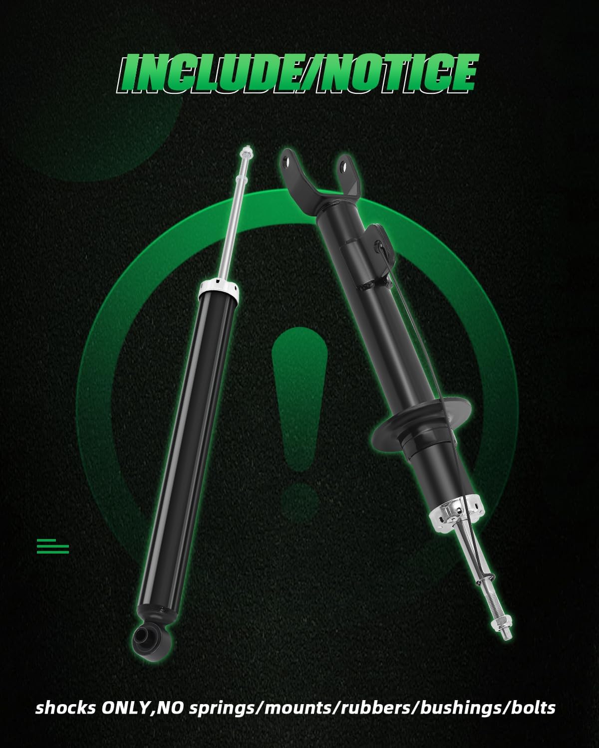 Shocks only,not including springs,washers,bolts,bushings,mounts,rubber and nut