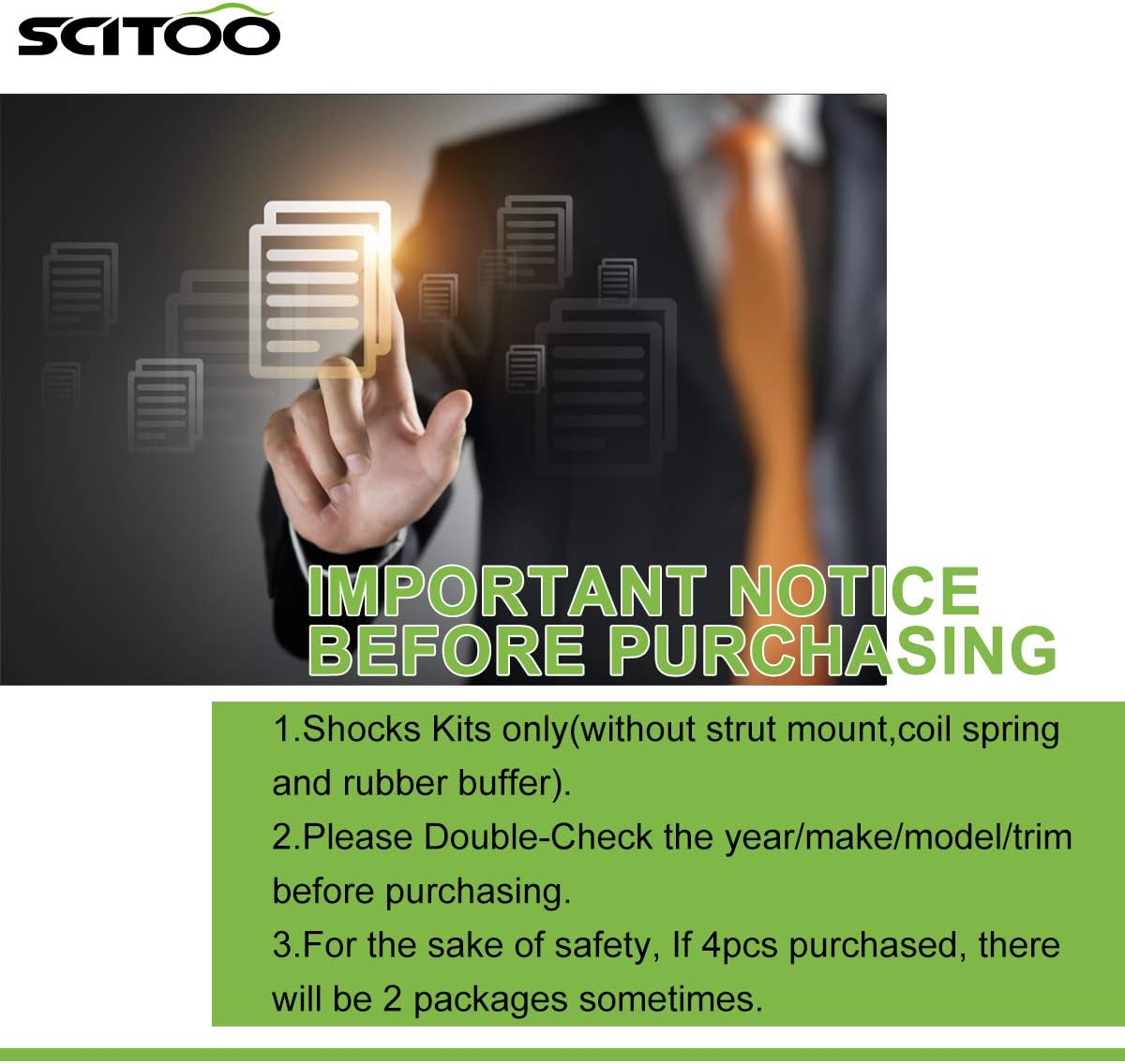 Great Recommend Parts, Customer-Friendly Cost, And Passionate Driving Experience. Choose SCITOO Shocks Struts, Choose Safety !