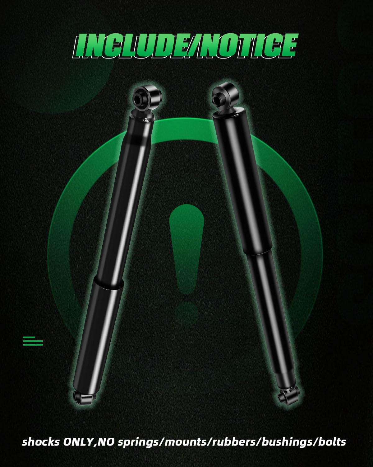 Shocks only,not including springs,washers,bolts,bushings,mounts,rubber and nut