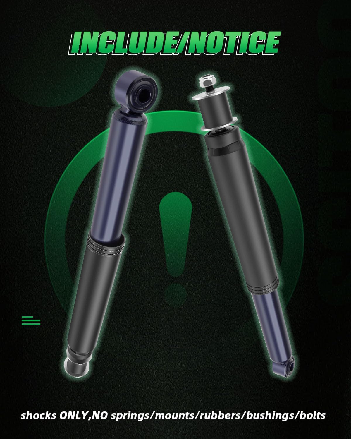 Shocks only,not including springs,washers,bolts,bushings,mounts,rubber and nut