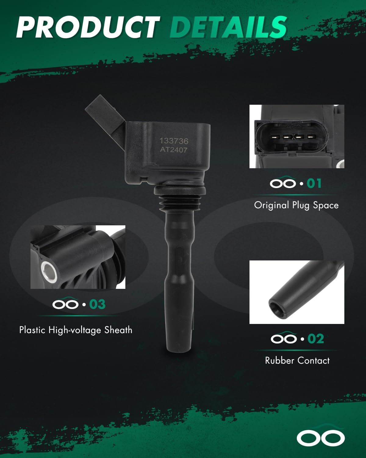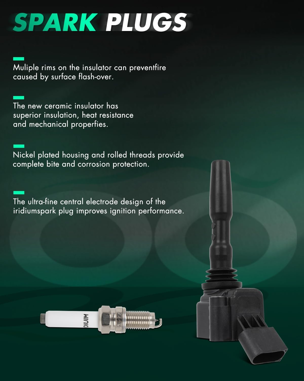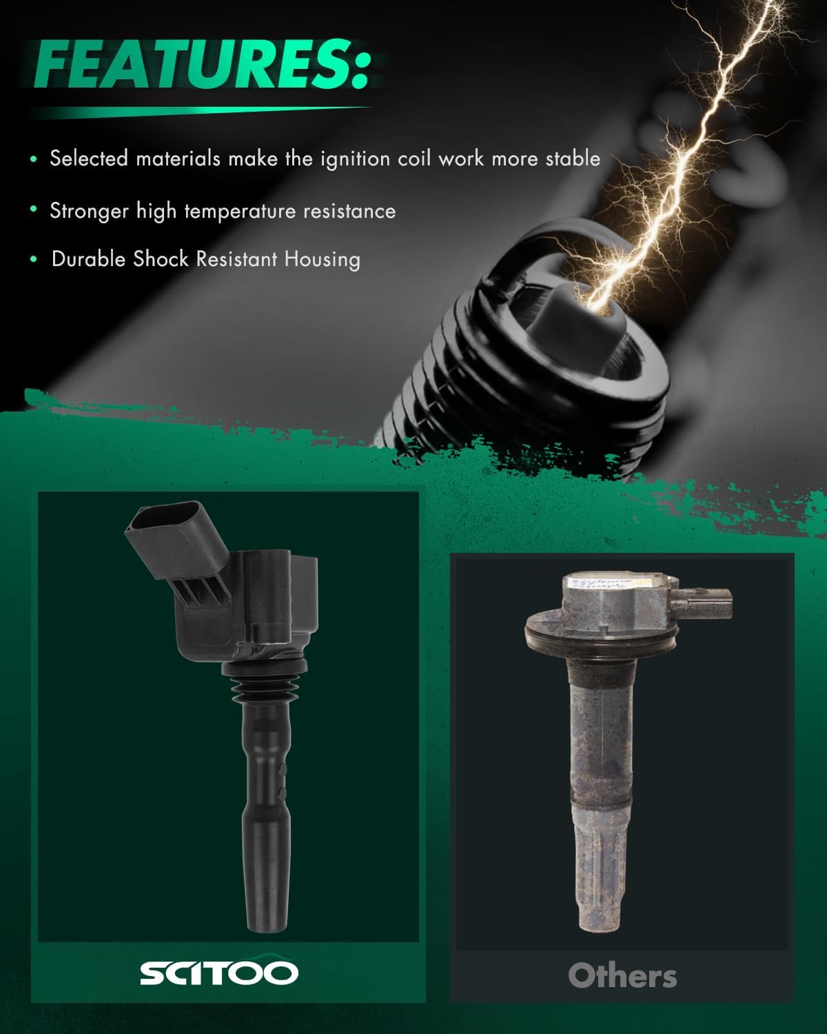 SCITOO UF779 ignition coil for J-etta 1.4L 2014-2017for G-olf 1.4L 2019-2020for A-udi A3 Sportback e-tron 1.4L 2016-2018 - 4 ignition coils wilth 4 iridium Spark Plugs Pack