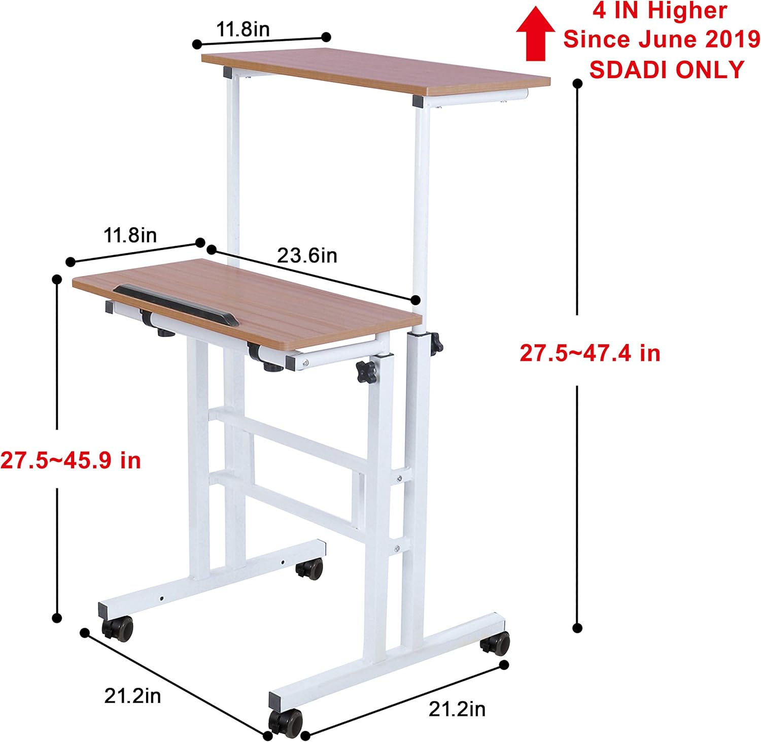 SDADI 2 Inches Carpet Wheels Mobile Standing Desk Stand Up Desk Height Adjustable Home Office Desk with Standing and Seating 2 Modes 3.0 Edition, Dark Grain S001WFDT