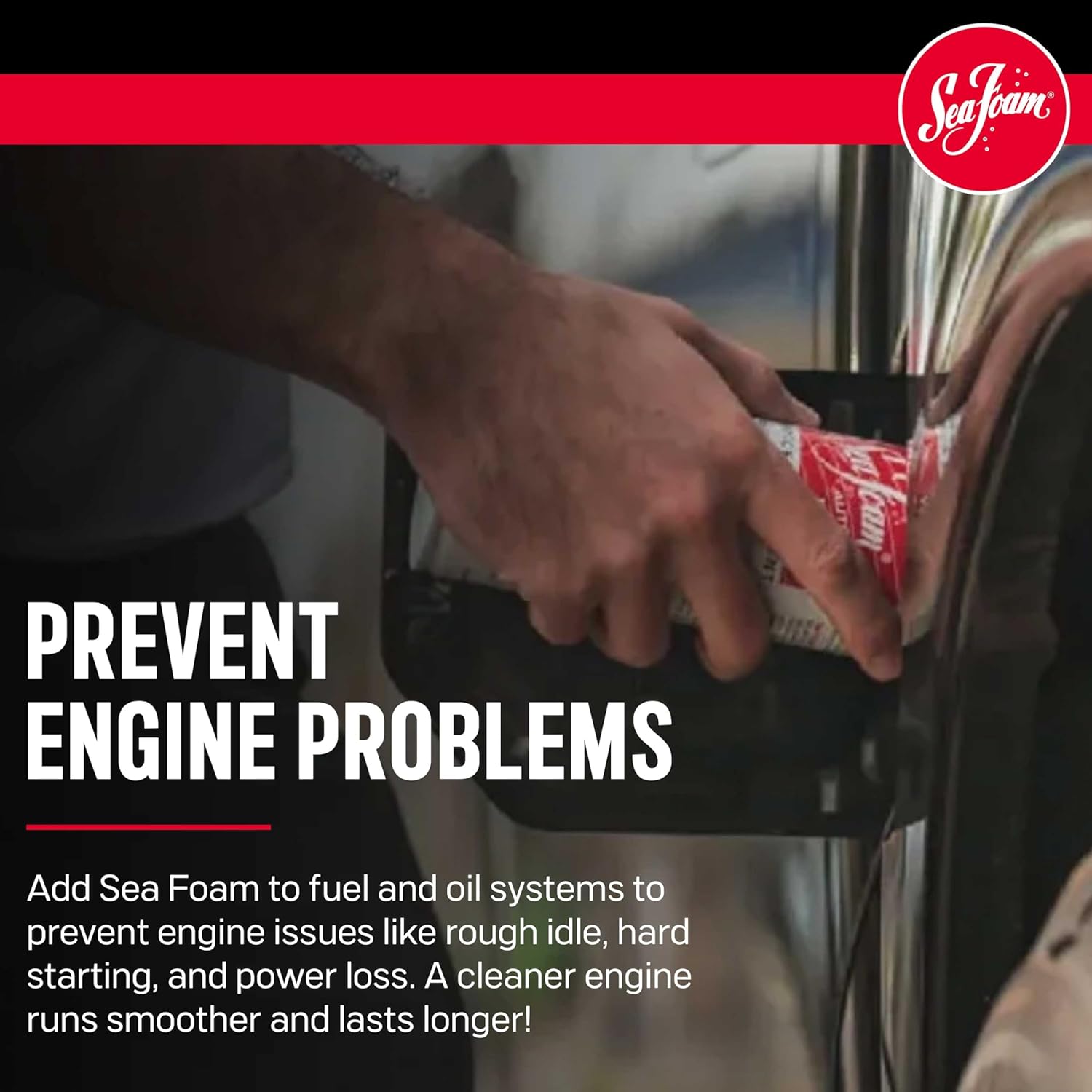 Help your engine run smoother and last longer! Sea Foam works in fuel and oil systems to clean and lubricate critical engine areas. Made from petroleum ingredients, Sea Foam is safe and effective when used in any gasoline or diesel engine. Just pour it in!