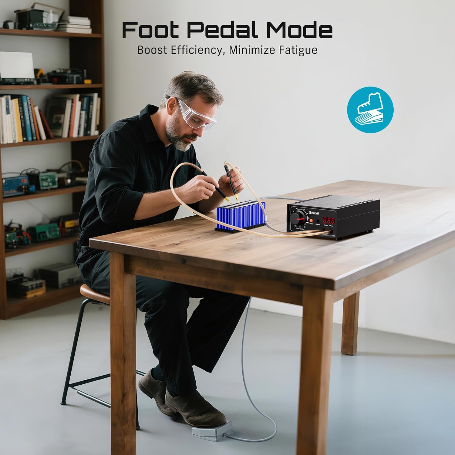 SEESII Battery Spot Welder: Battery Welder Kit for 0.1-0.3mm Nickel Strip Welding, Spot Welder for Lithium Battery, 10-90 Gears, Foot Pedal Control, Dual Pulse, Ideal for 18650 Battery DIY