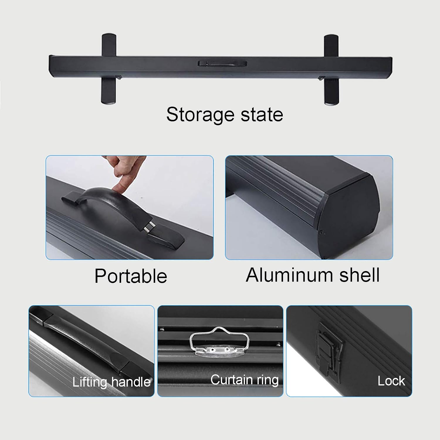 Portable freestanding floor standing projector screen. Watch presentations, sports games, movies or TV shows almost anywhere with this premium quality Full HD portable projector screen. It can be freestanding or placed anywhere. With the gas spring structure, you can stop the screen at any height you need, stable and silent.