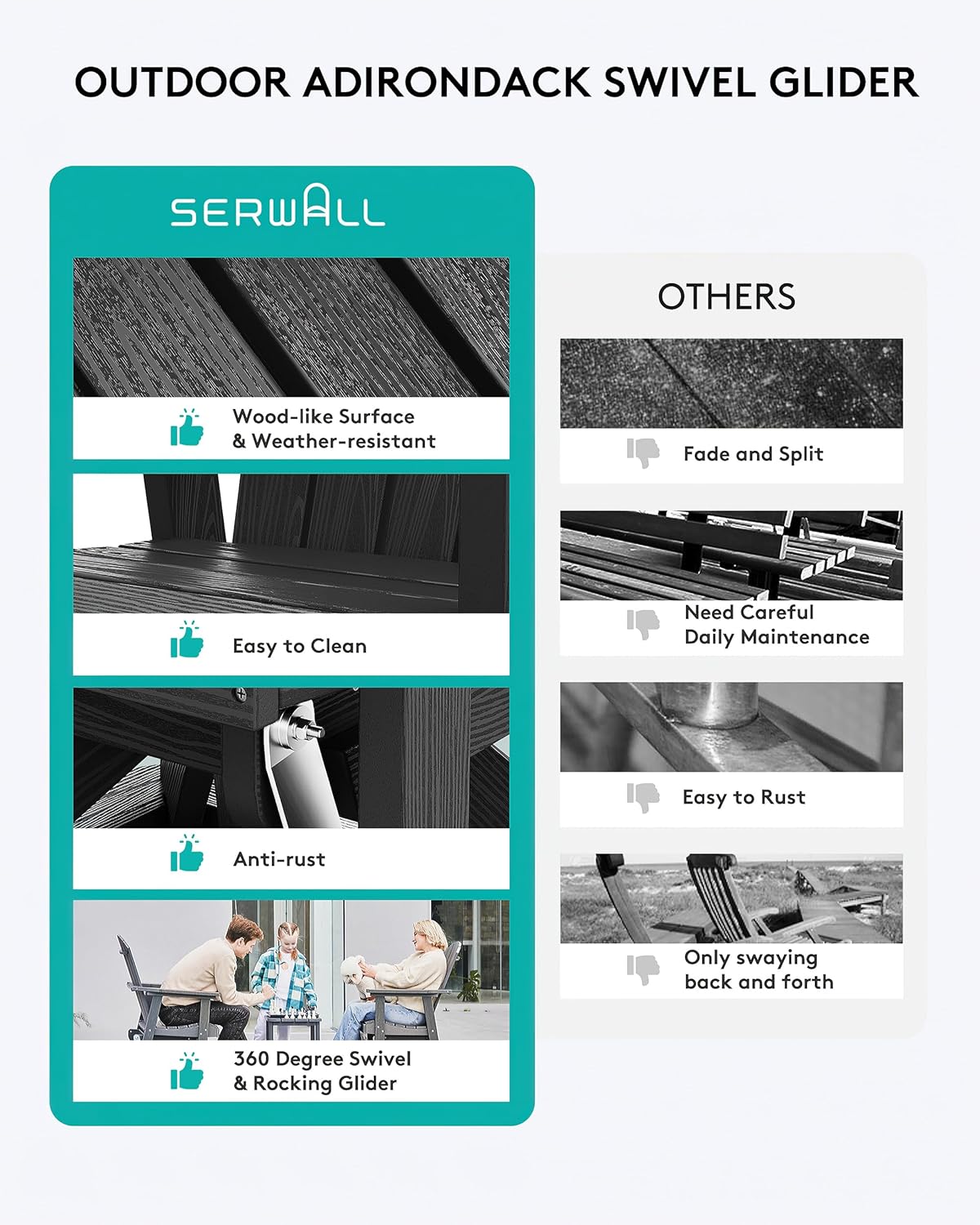 SERWALL Adirondack Swivel Glider Chair, HDPE Swivel Glider Set of 2 for Outdoor, All-Weather Glider Chair for Porch, Balcony, Midnight Black