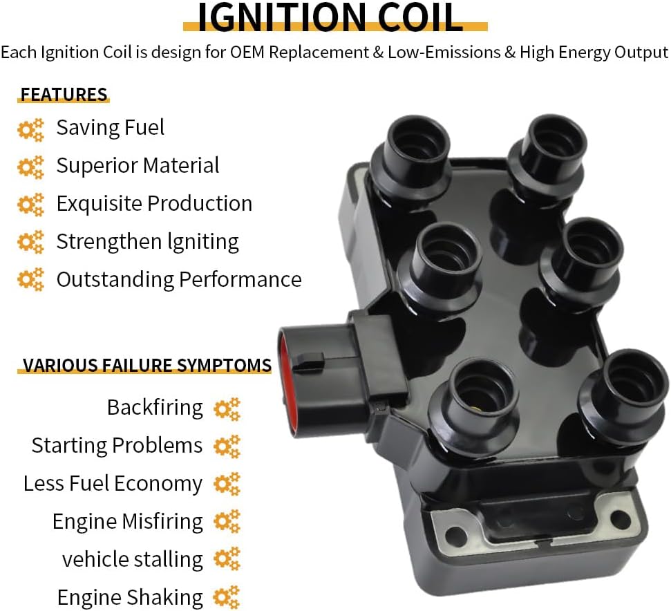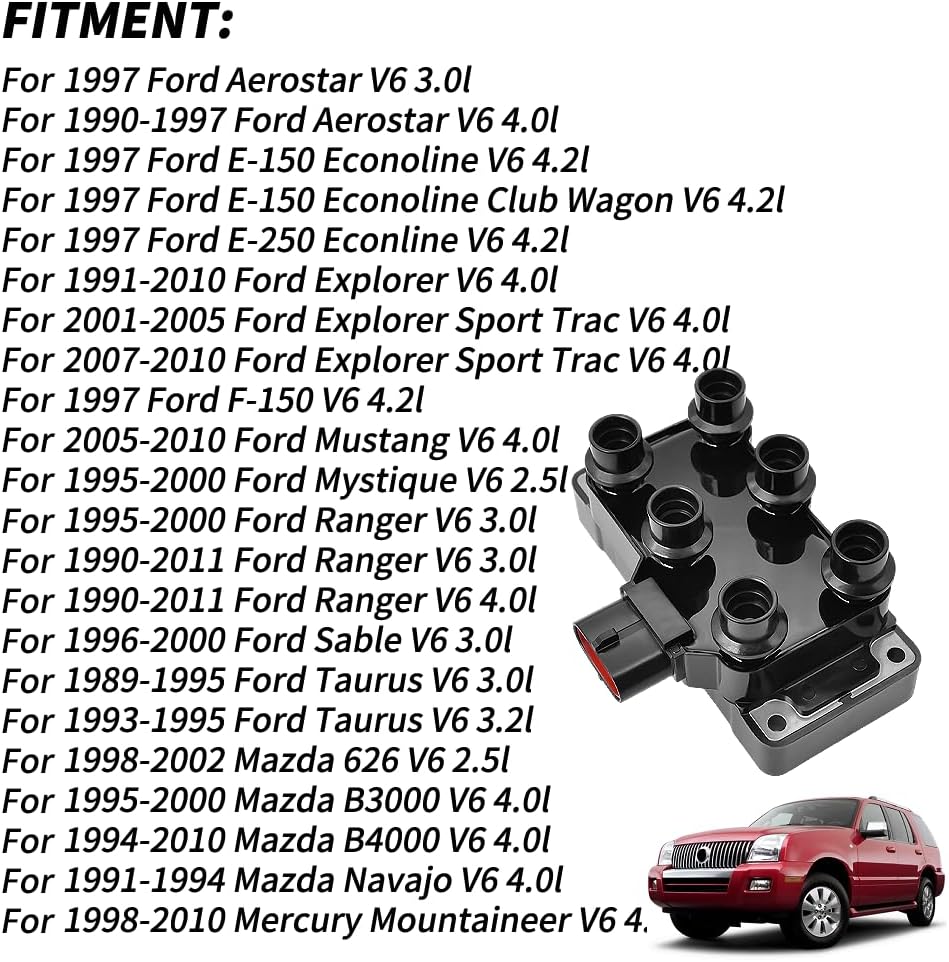 Set of 1 DG452 Ignition Coil Pack & 6PCS Spark plugs & wires Compatible with 1990-2011 Ford Ranger 3.0l, 2005-2010 Mustang Aerostar Econoline Explorer Mystique Mystique Sable Taurus Replaces FD480