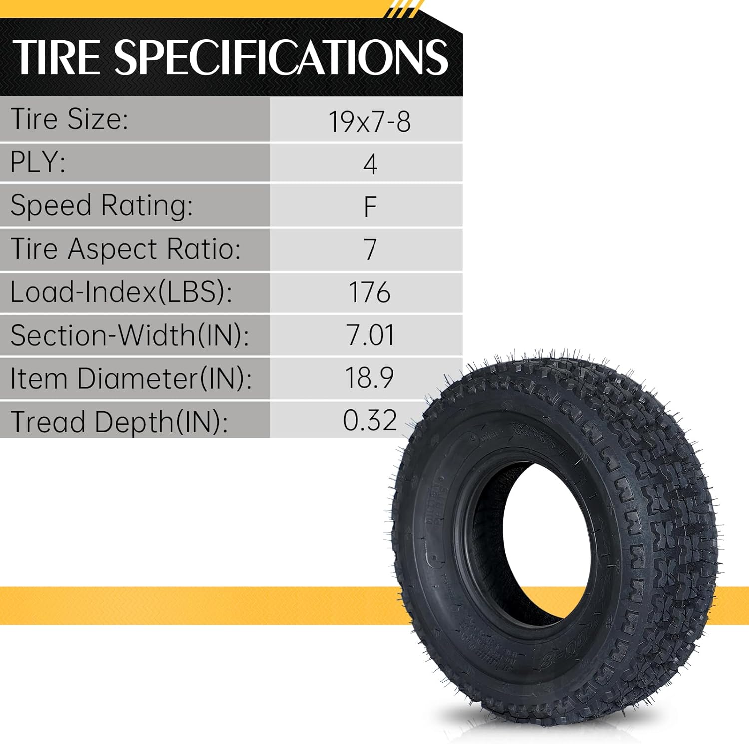 Set of 2 19x7-8 All Terrain ATV UTV Tire 19x7x8 Tubeless Sport Tires 4 PR