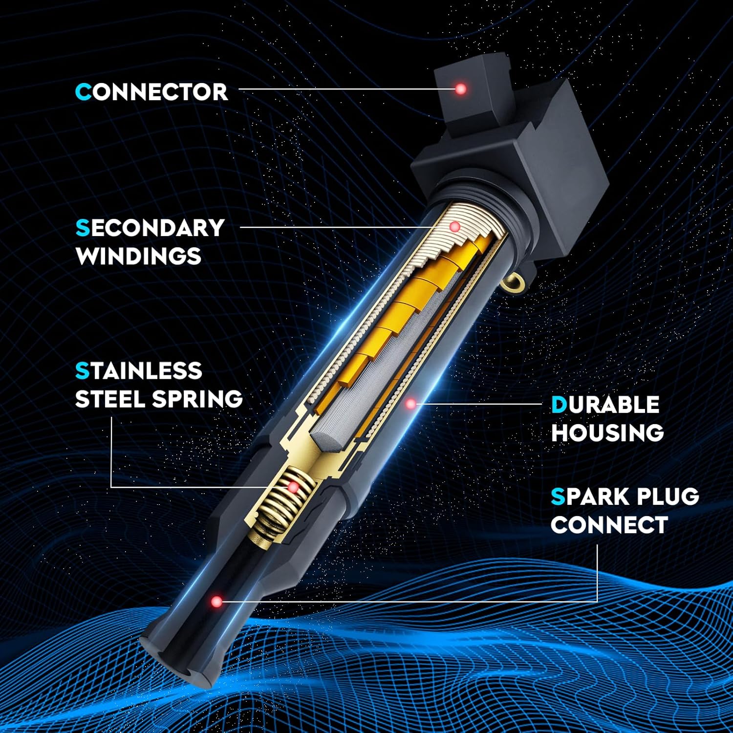 Set of 4 Ignition Coil Pack 2.2L 2.5L Compatible with 2012-2020 Mazda 3, 2016-2019 CX-5, 2014 Mazda 6, 2019 CX-5, 2016-2018 MX-5 Miata Replace UF656 5C1894 C1837 GN10625