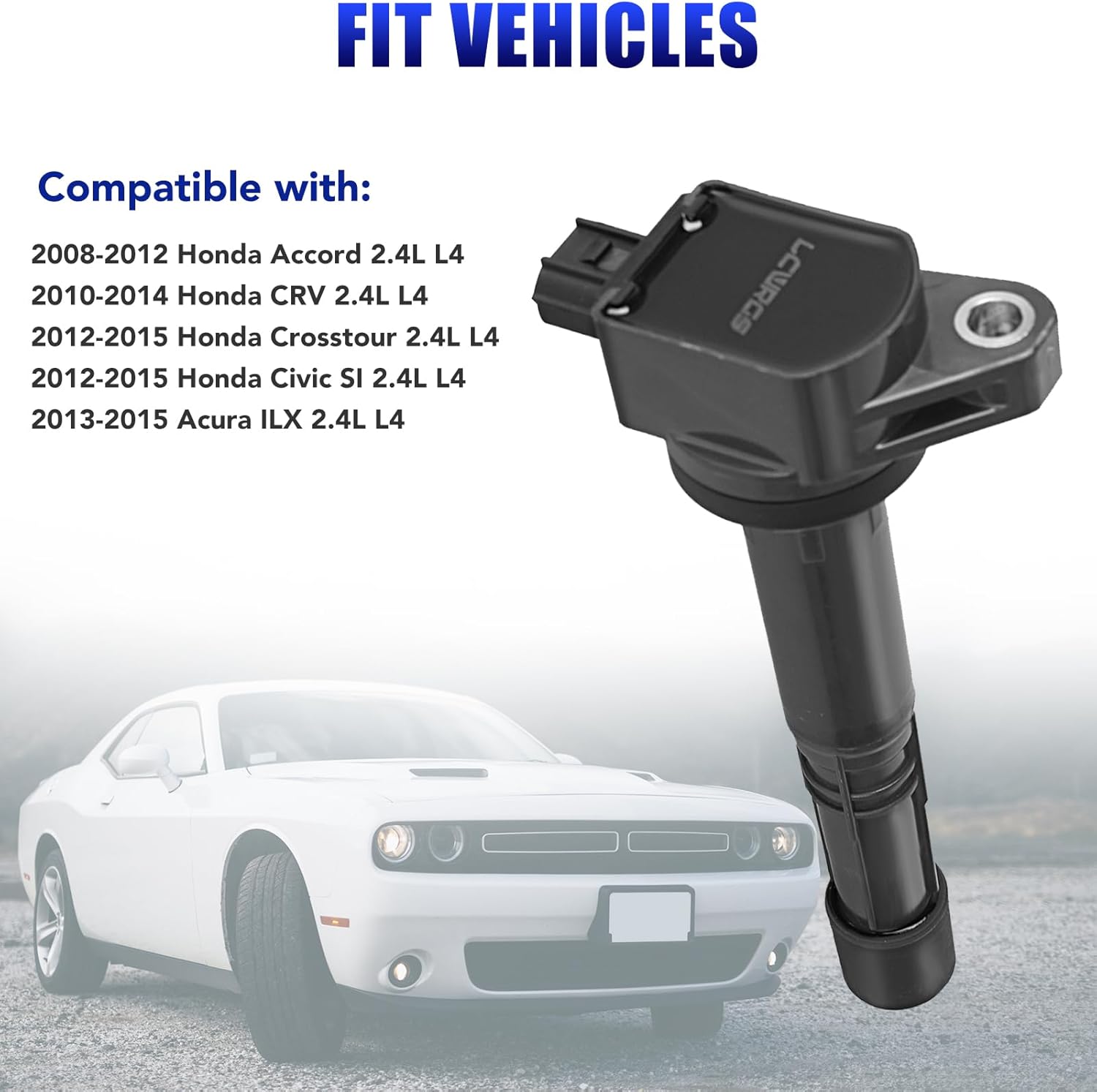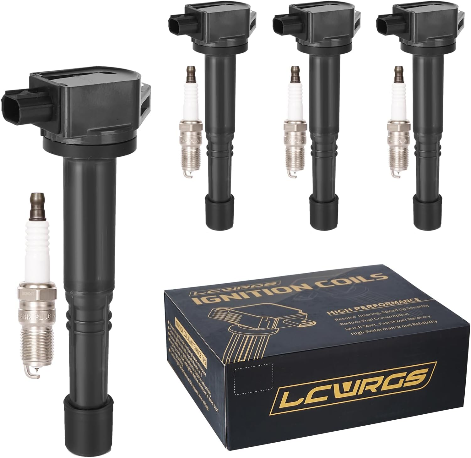Set of 4 Ignition Coil Pack and Spark Plugs Fits for 2.4 L4 Honda Accord CRV Crosstour Civic SI Acura ILX 2008 2009 2010 2011 2012 2013 2014 Replaces UF602