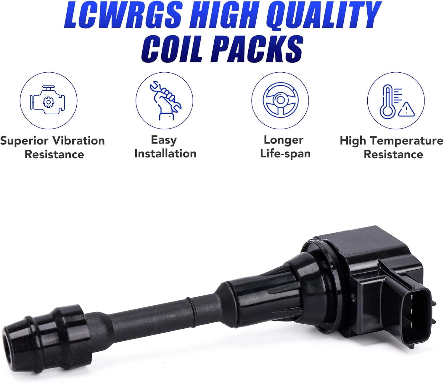 Set of 4 Ignition Coil Pack and Spark Plugs Fits for 2.5 L4 Nissan Altima Sentra 2002 2003 2004 2005 2006 2.5l Replaces UF350 C1398