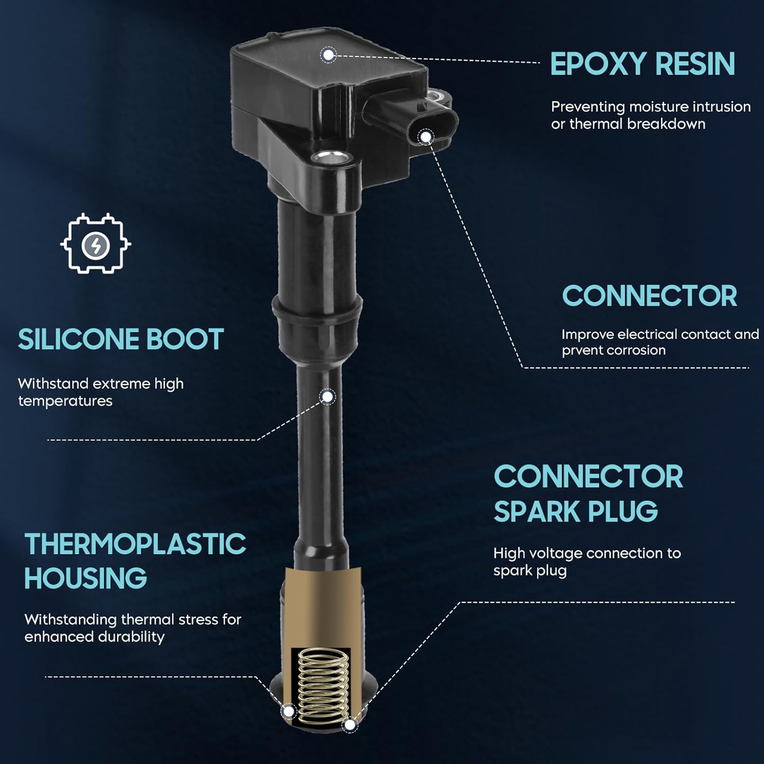 Set of 4 Ignition Coil Pack Compatible with Ford Escape Fiesta Fusion Transit Connect 1.6L L4 2013 2014 2015 2016,2017 2018 2019, Replace for UF674 C871 GN10644, Black