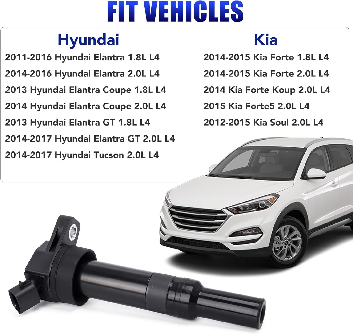 Set of 4 Ignition Coil Pack for 2.0 1.8 L4 Hyundai Elantra Tucson Kia Soul Forte 2011 2012 2013 2015 2015 2016 Coil Packs Replaces# UF651 C1804