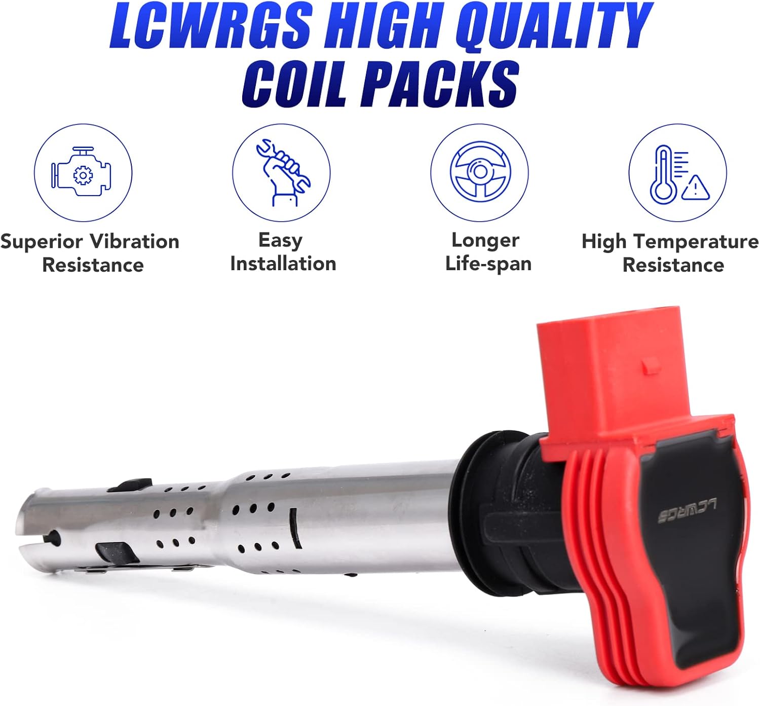 Set of 4 Ignition Coils Fits for 2.0T Audi A4 A6 Volkswagen VW CC Passat GTI 2008 2009 2010 2011 2012 2013 2014 2015 2016 2.0 Coil Packs Replaces# 06E905115E 06H905115B UF529