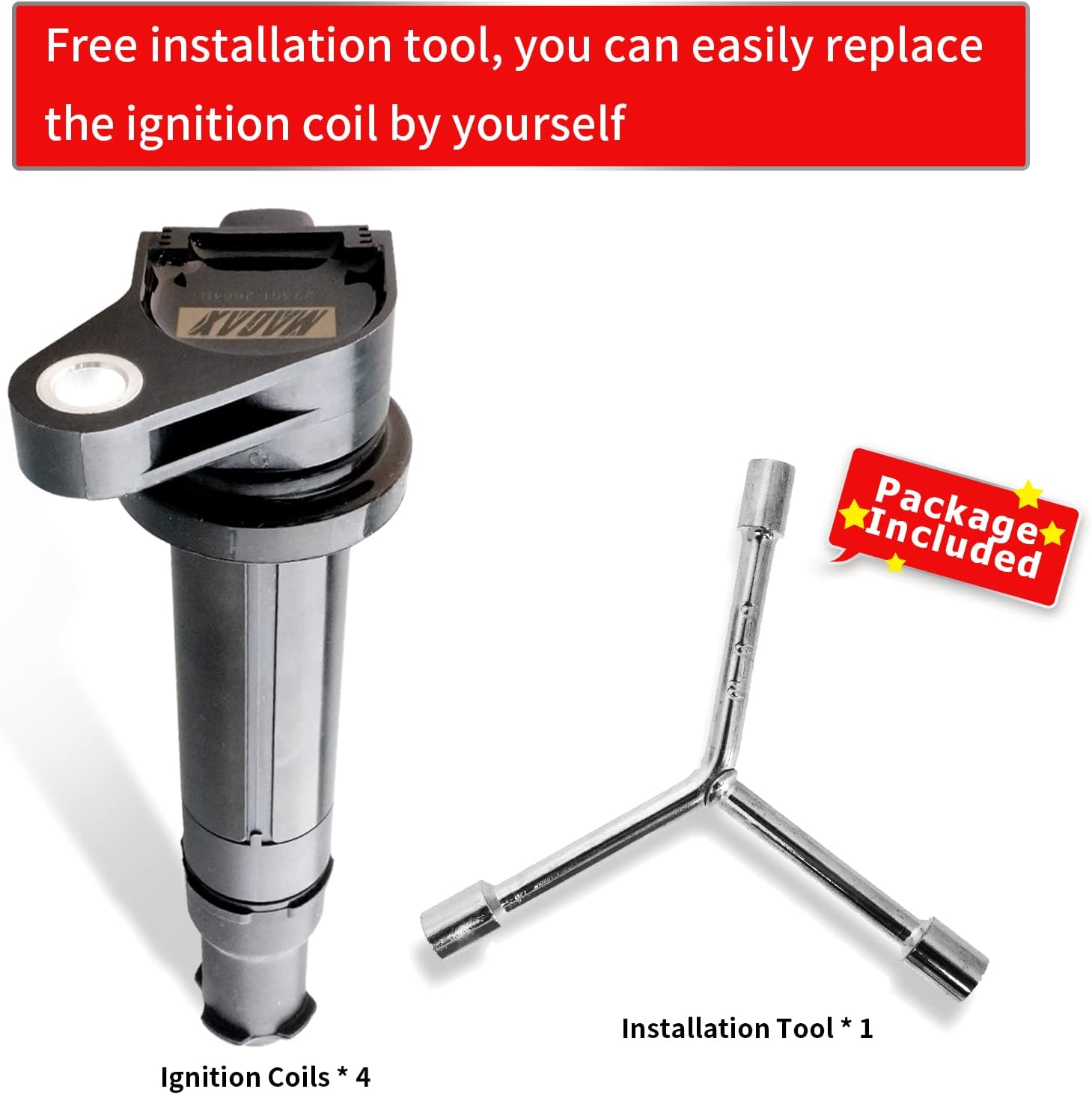Set of 4 Ignition Coils UF499 C1543 Compatible with Hyundai Kia Dodge 2006 2007 2008 2009 2010 2011 Accent Rio Rio5 Attitude - L4 1.6L