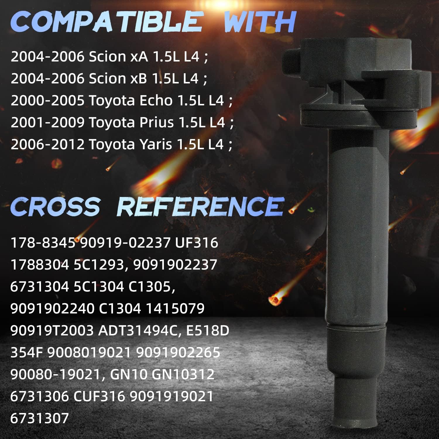 Set of 4 New Ignition Coil on Plug Pack With Boot Compatible with 04-06 Scion Xa/xB 00-05 Echo 01-09 Prius 06-12 Yaris 1.5L L4