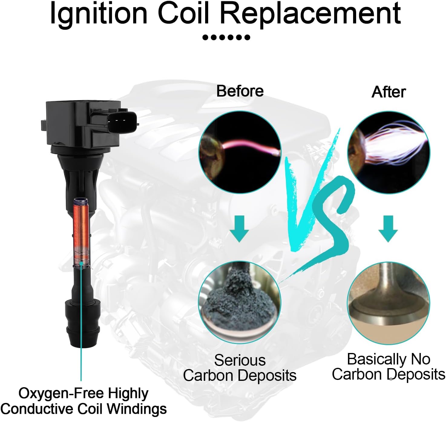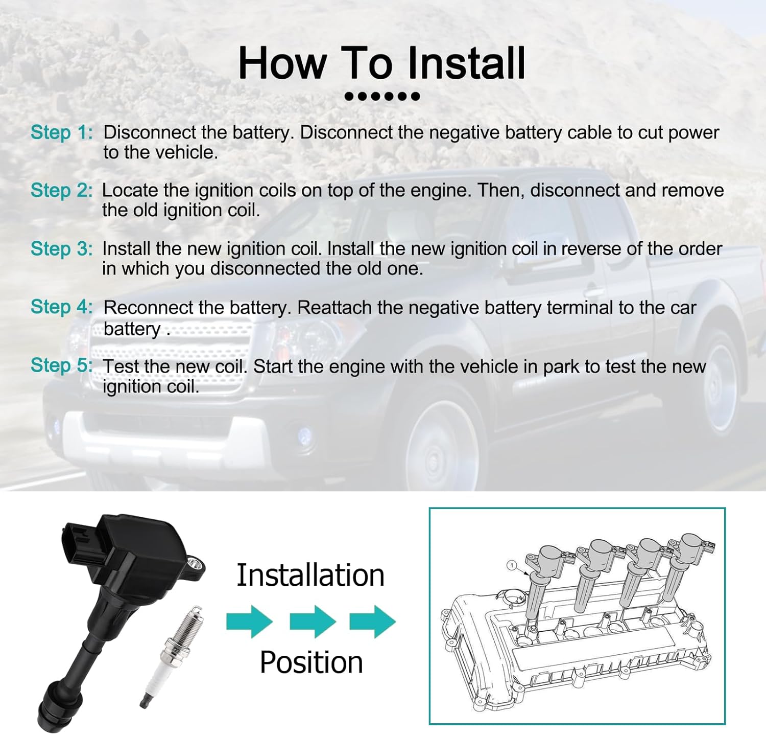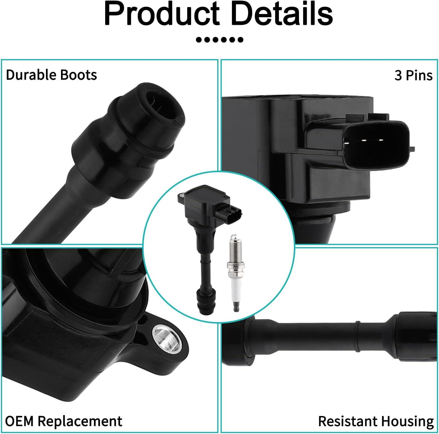 Set of 4 UF350 Ignition Coil Pack/4505 Spark Plugs(2.5L L4 Only) For Nissan Altima 2002 2003 2004 2005 2006,Sentra X-Trail 2002 2003 2004 2005 2006 2007 2008,X-Trail 2010 2011 2012 2013 224488H315