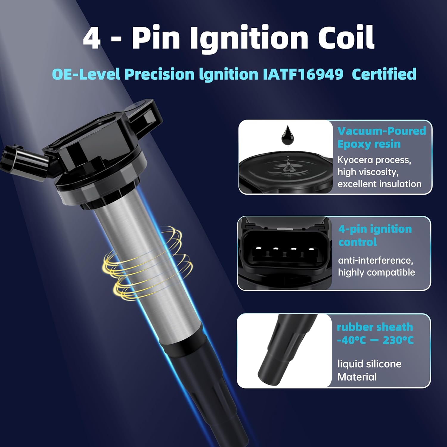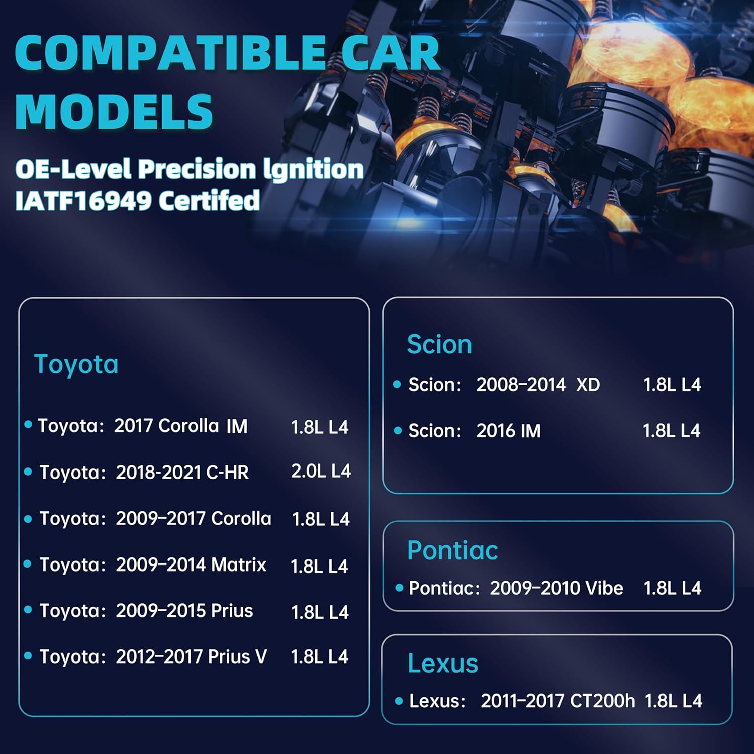 Set of 4 UF596 Ignition Coil Pack Compatible with 1.8L L4 2009-2001 Toyota Corolla Matrix CorollaiM C-HR Prius Prius V/2008-2016 Scion XD IM/Pontiac Vibe/Lexus CT200h Replaces#UF619 90919-02252 C1714