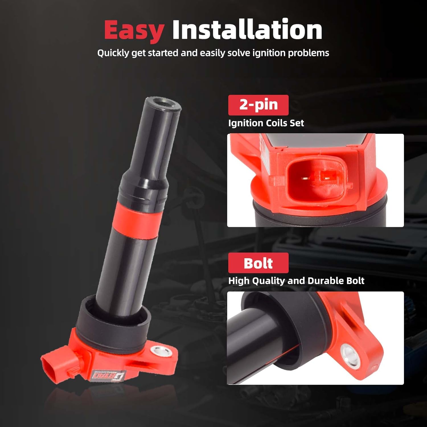 Set of 4 Upgraded Ignition Coil Pack for 1.8L 2.0L L4 2011-2020 Hyundai Elantra, 2014-2021 Hyundai Tucson, 2014-2016 Kia Forte, 2014-2018 Kia Forte5, 2012-2019 Kia Soul Replaces UF651 C1804