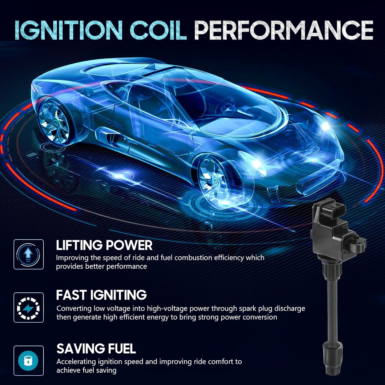Set of 6 Ignition Coil Pack Compatible with Infiniti I30 1996-1999 Nissan Maxima 1995-1999 3.0 V6, Replace for UF138 UF262 UF139 UF263, Black