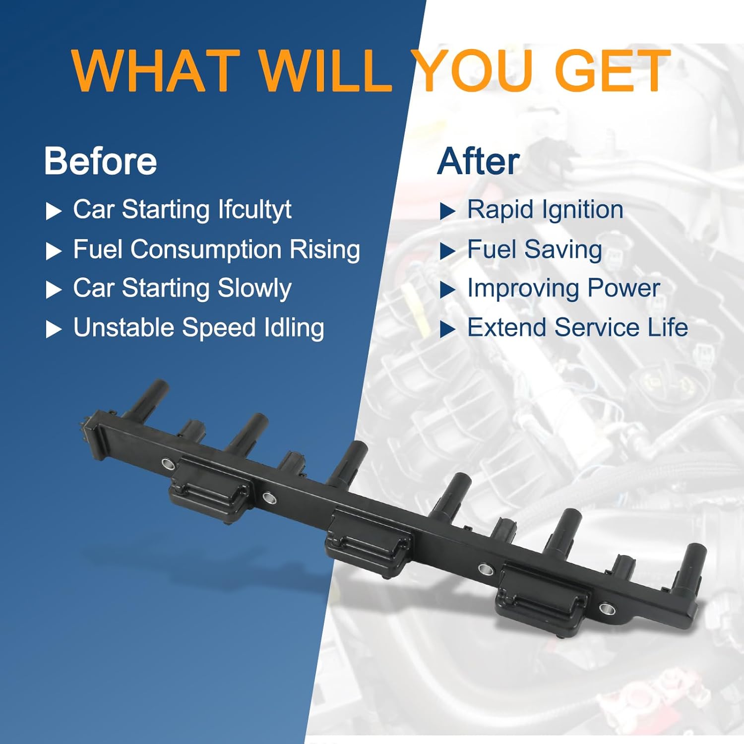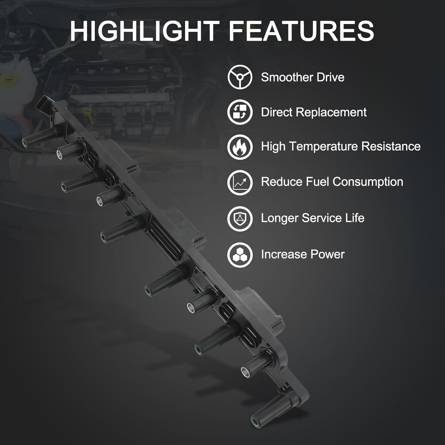 Set of 6 Ignition Coil Pack Compatible with Jeep Cherokee Grand Cherokee Wrangler TJ L6 4.0L Replace# UF296, 56041476AA, 56041476AB, 68247208AA, GN10529, C523