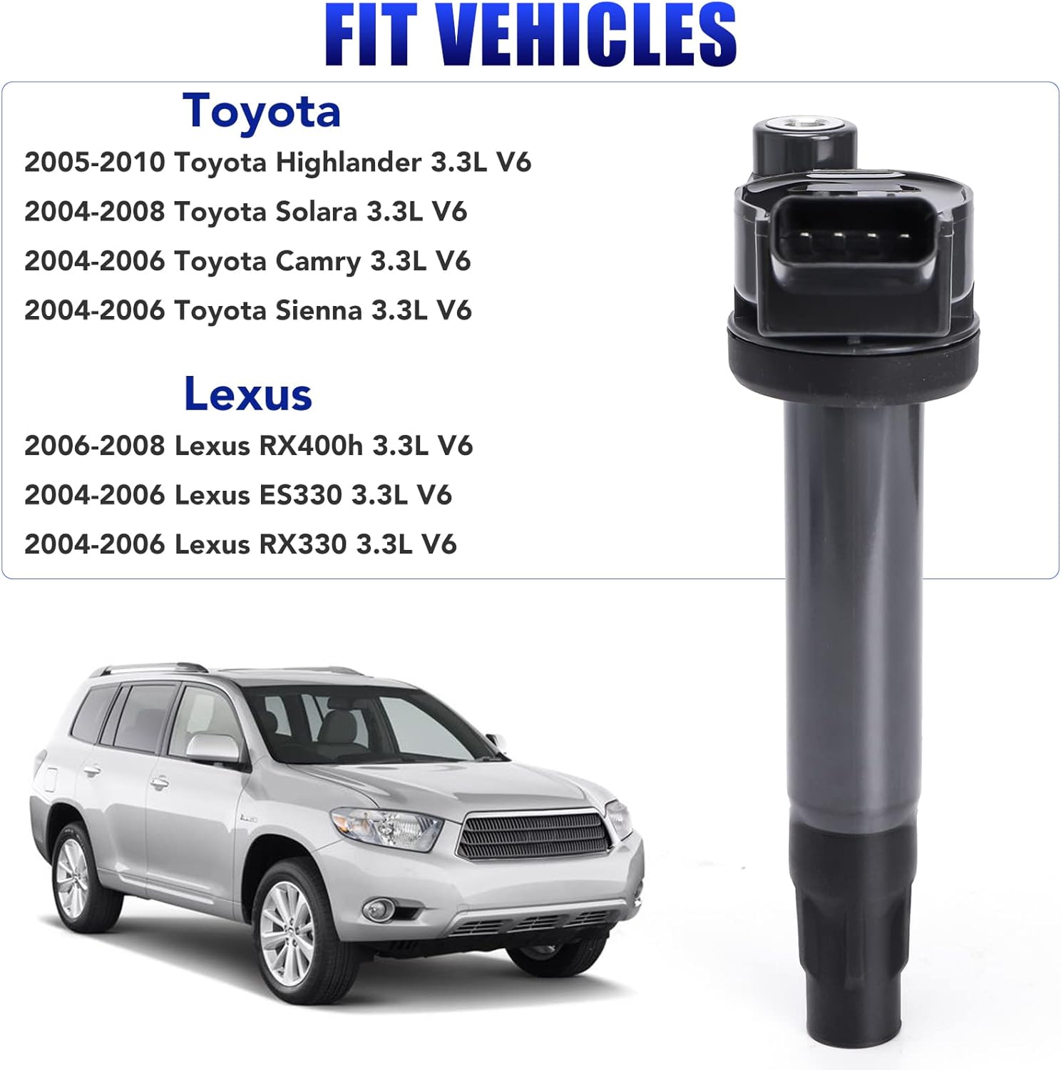 Set of 6 Ignition Coil Pack Fits for 3.3 V6 2004 2005 2006 2007 2008 Toyota Sienna Highlander Solara Lexus RX330 ES330 RX 330 ES 330 Coils 3.3L Replaces UF506