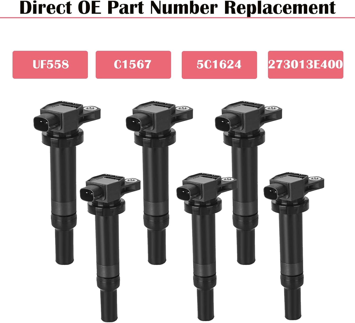 Set of 6 Ignition Coil Packs Fits for 2.7 V6 2007 2008 2009 2010 Hyundai Santa Fe Kia Optima Rondo Coils 2.7l Replaces UF558 C1567