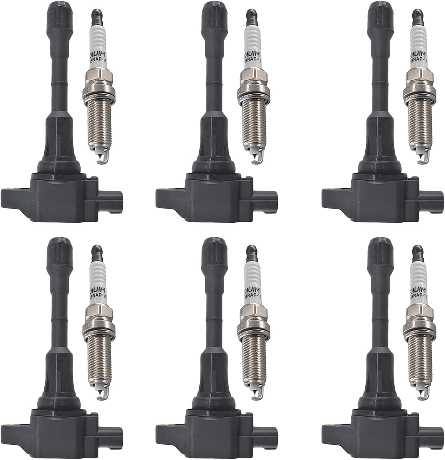 Set of 6 Iridium Spark Plug and 6 Ignition Coil Pack Compatible with Nissan Infiniti Maxima Murano Pathfinder Quest Altima Q50 QX60 FX35 370Z Q70 G37 QX50 QX70 V6 Replacement for UF550