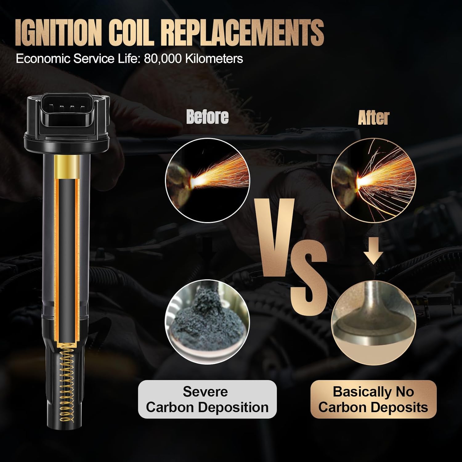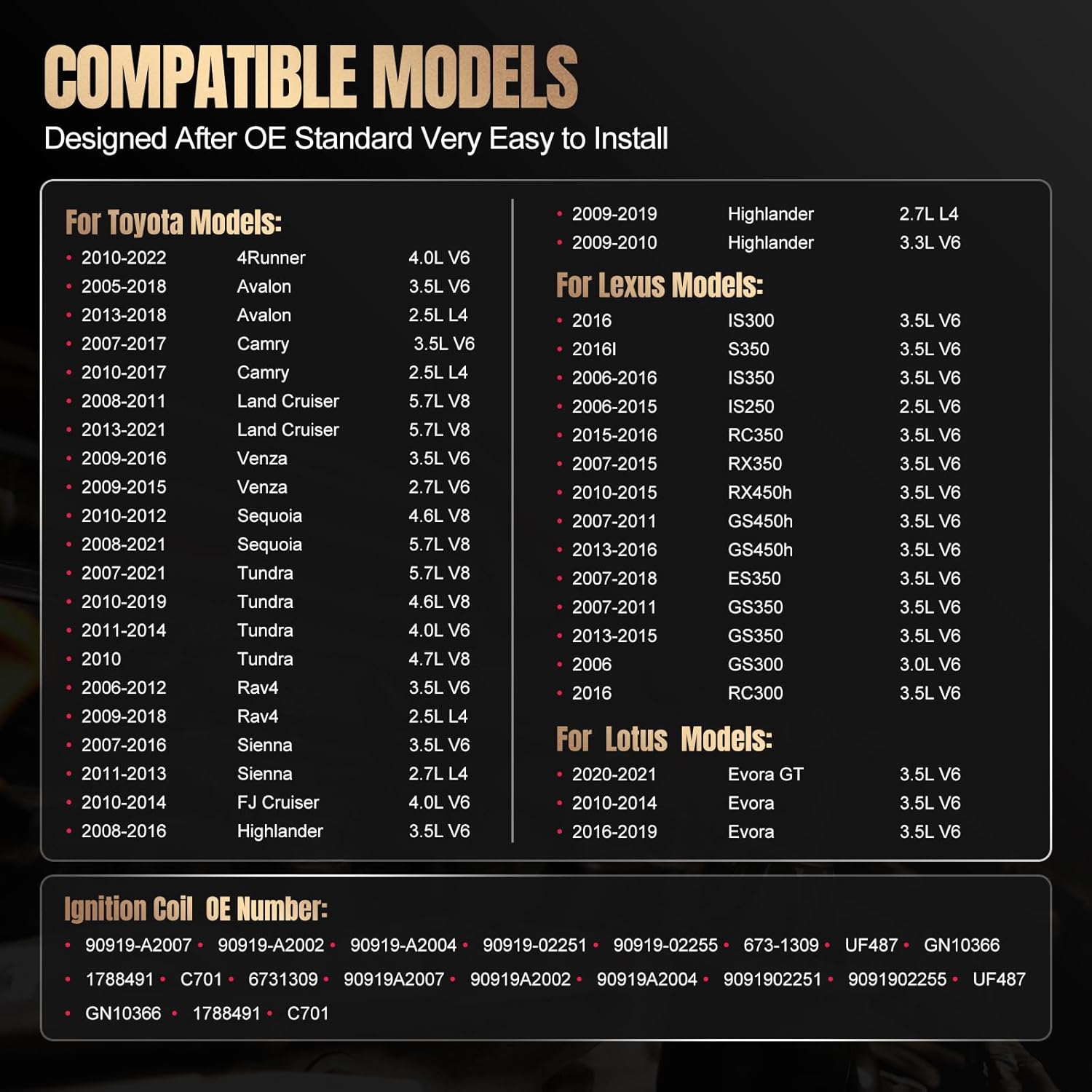 Set of 6 UF487 Ignition Coil Pack Compatible with Toyota Avalon Highlander Camry Sienna Rav4 Venza 4Runner ES350 IS350 RX350 RX450h GS350 ES300h 2.5L L4 3.5L V6 Replaces C1601 90919-A2007