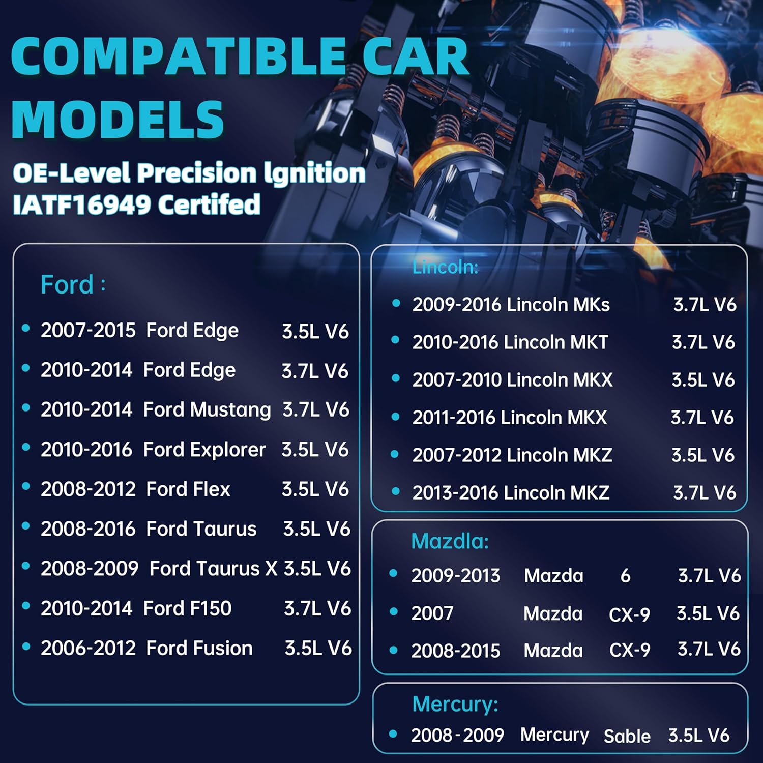 Set of 6 UF553 Ignition Coil Pack & Iridium Spark Plug 3.5L 3.7L V6 Compatible with 2006-2016 Ford Taurus Edge Mustang Explorer Flex F-150 Fusion, Lincoln MKS MKT MKX MKZ, Mazda6 CX-9, DG-520 UF595