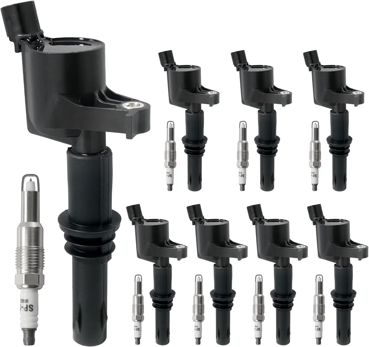 Set of 8 Ignition Coil Packs & Spark Plugs Compatible with 5.4L V8 2004-2008 Ford Expedition F150 F250 F350 Super Duty, Lincoln Mark LT Navigator Replace DG511 FD508 C1541 SP546 (Straight Black Boot)