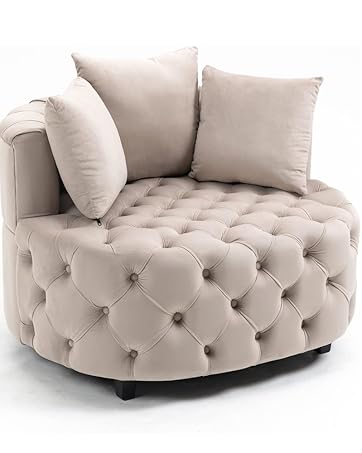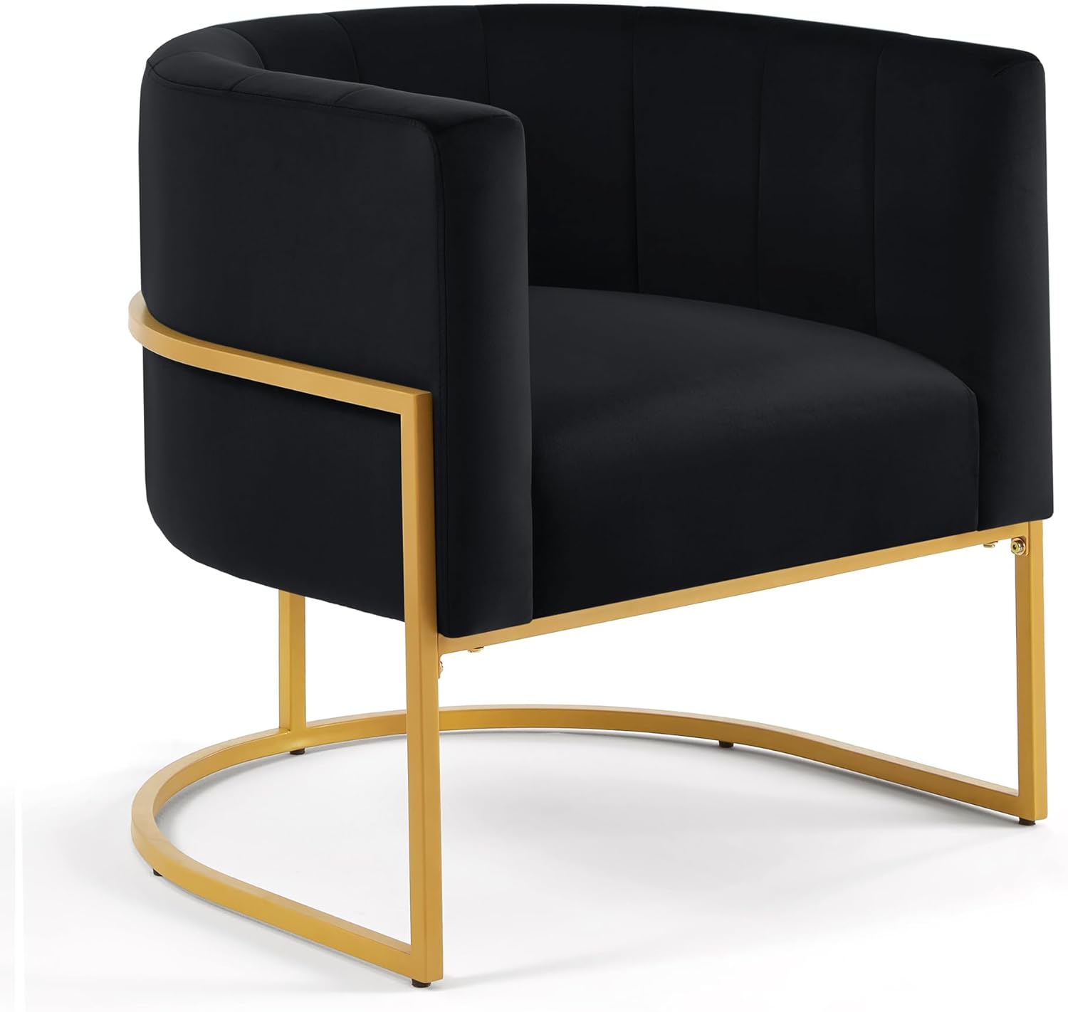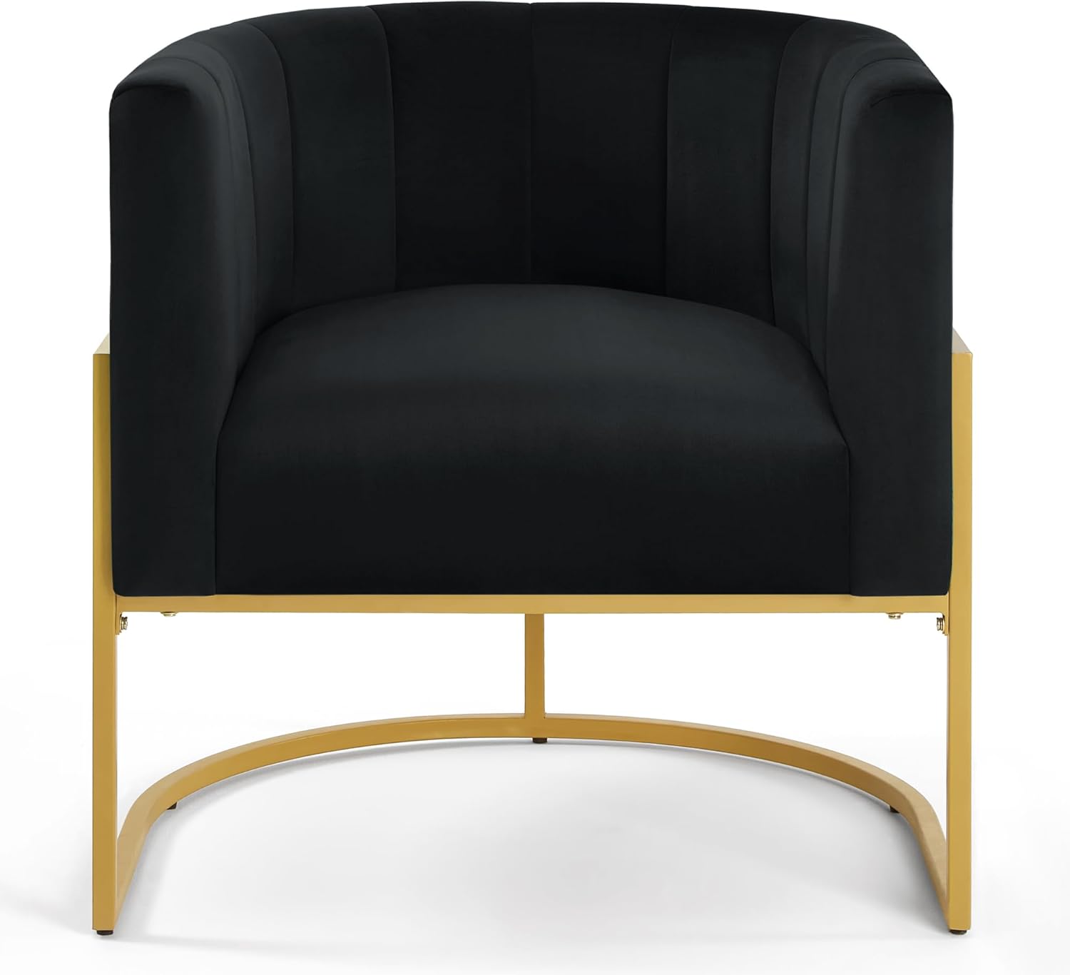 Modern Velvet Upholstered Barrel Chair with Channel Tufted Back and Golden Metal Base