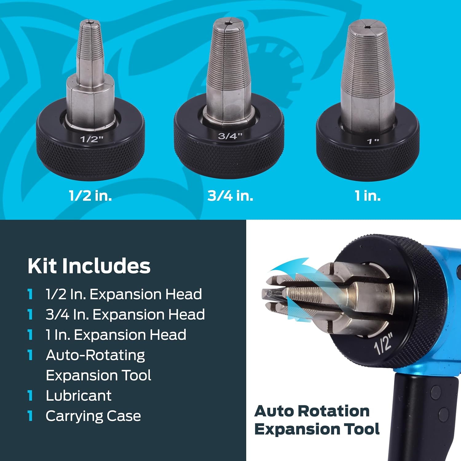 SharkBite PEX-A Expansion Tool Kit, Includes 1/2 inch, 3/4 inch, and 1 inch Expansion Heads, Auto-Rotating Expansion Tool, Lubricant and Carrying Case
