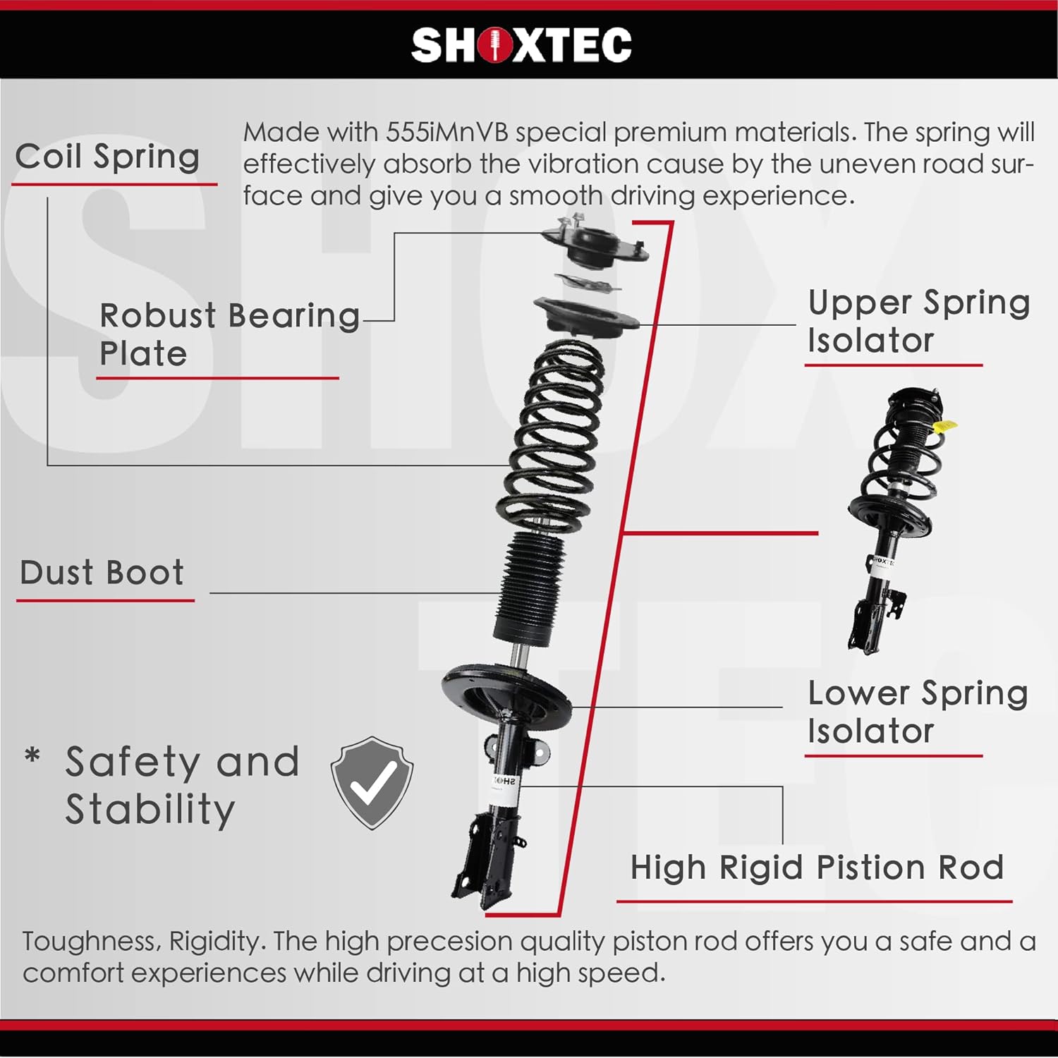 Shoxtec Front Pair Complete Struts Assembly Replacement for 2007-2010 Ford Explorer Sport Trac Coil Spring Shock Absorber Repl. part no 371124
