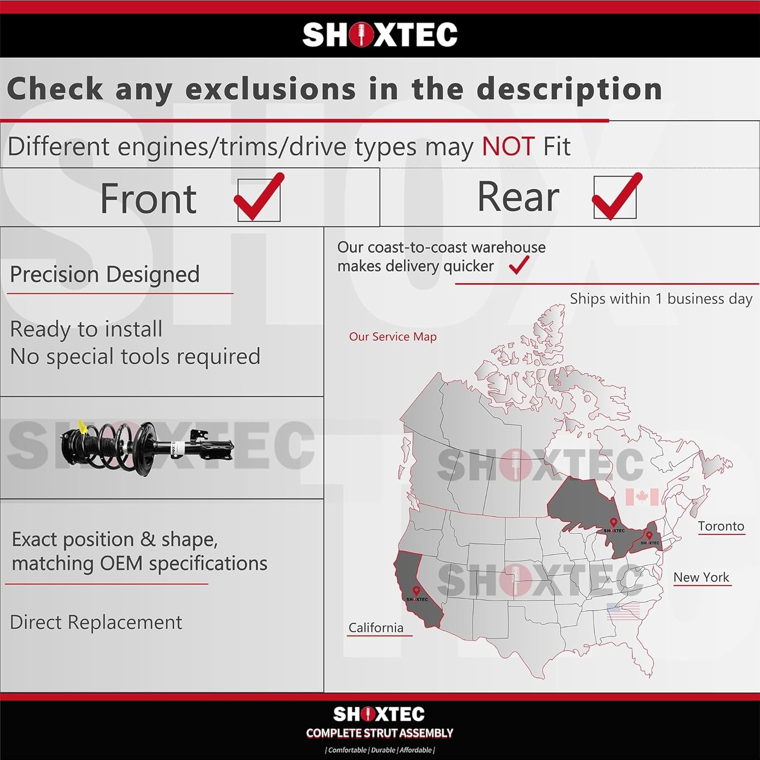 Shoxtec Full Set Complete Strut Shock Absorbers Replacement for 2007-2009 Dodge Caliber; Replacement for 2010-2011 Dodge Caliber; Replacement for 2012 Dodge Caliber; Repl. no 172368 172367 172401