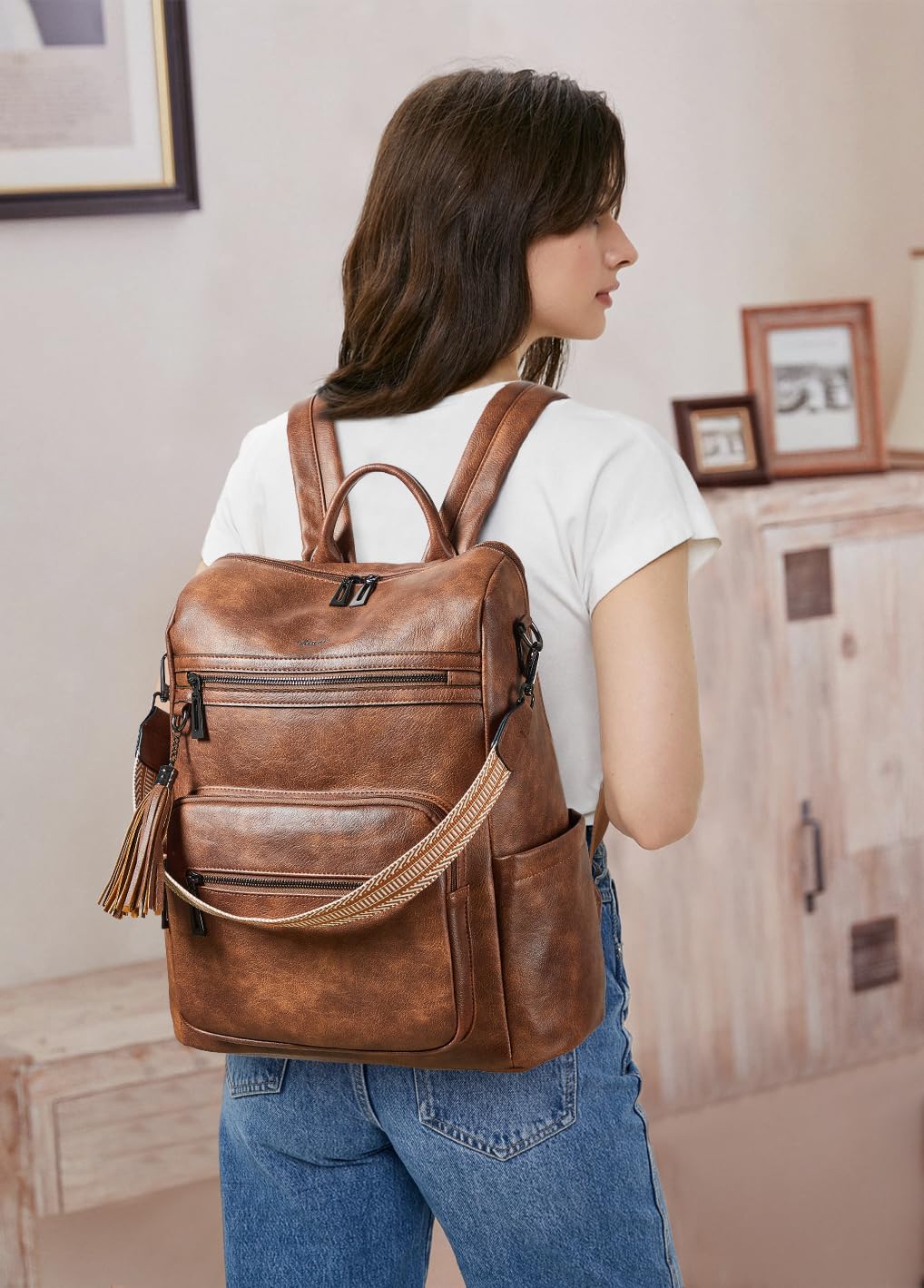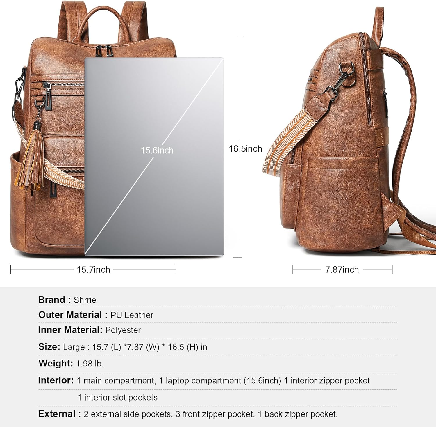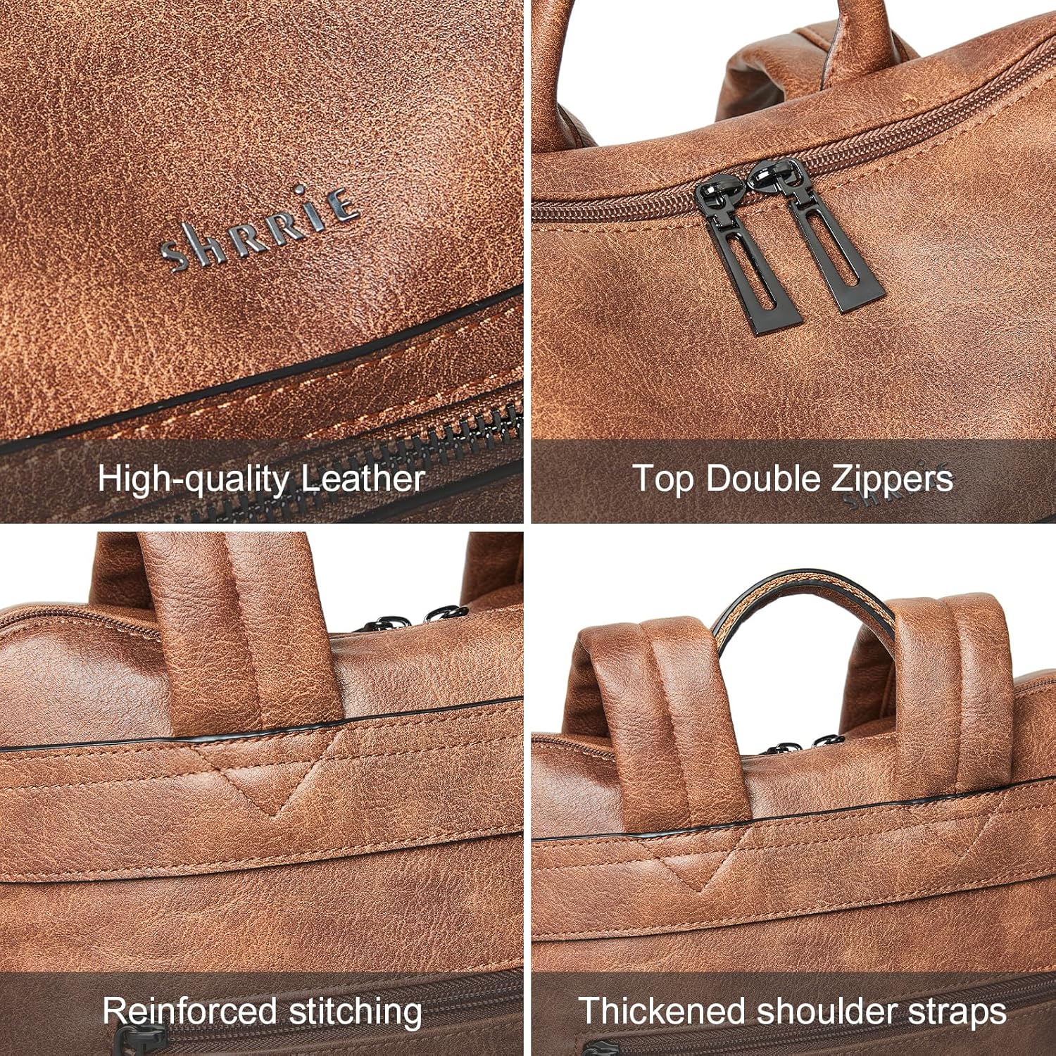 Shrrie 15.6 inch Laptop Backpack for Women,Large Leather Backpack Purse,Travel,Carry on,Water Resistant Casual Laptop Backpacks,College Backpack,Work Backpack for Women,Two-toned Brown