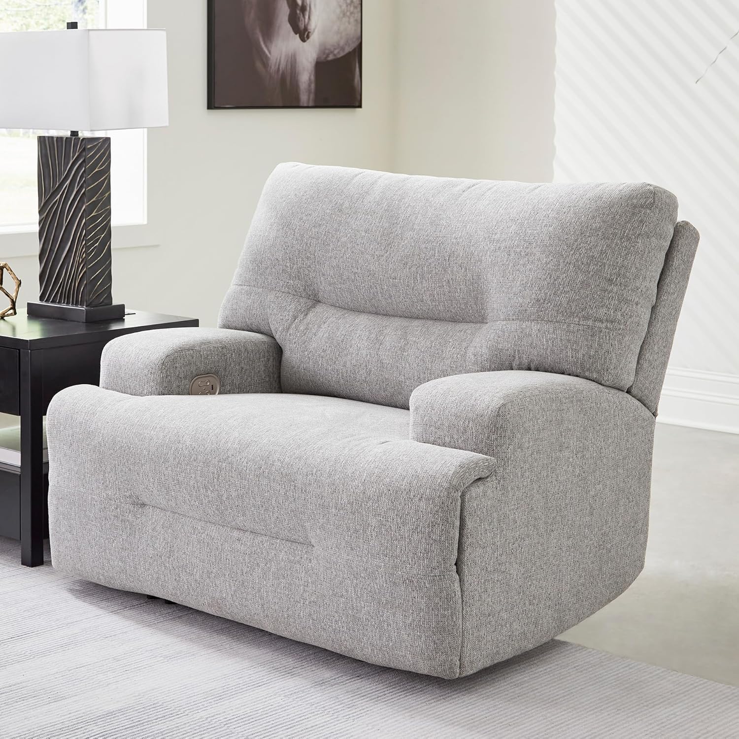 Signature Design by Ashley Acklen Place Contemporary Indoor Zero-Gravity Stain Resistant Oversized Upholstered Power Recliner with Adjustable Headrest and USB Port, Light Gray