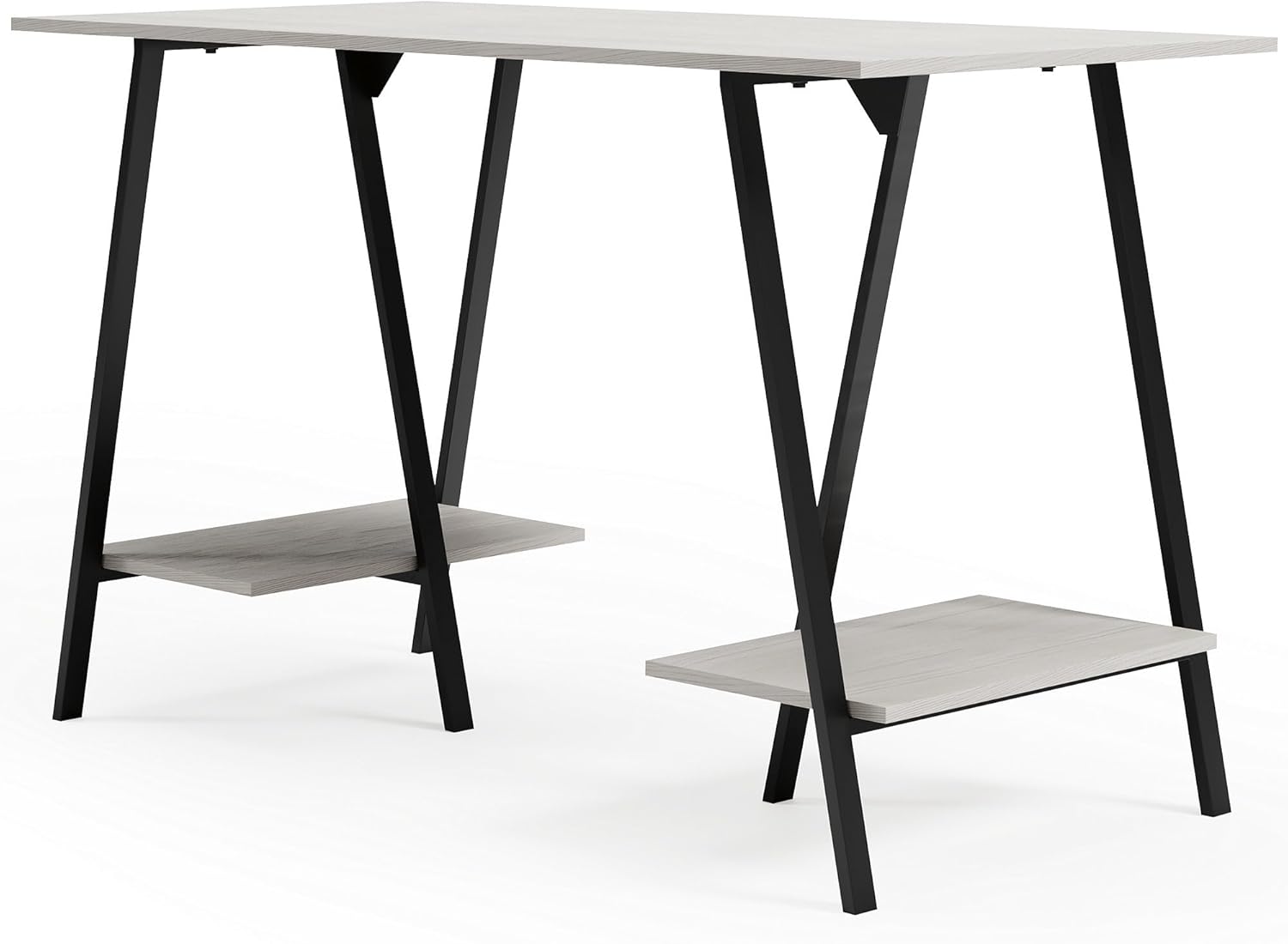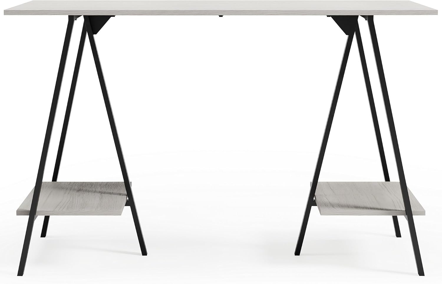 Signature Design by Ashley Bayflynn Modern Home Office Desk or Drafting Table with Sawhorse Legs, White & Black