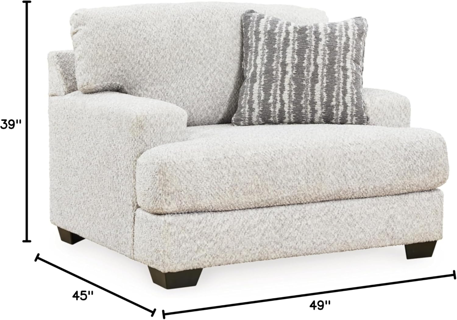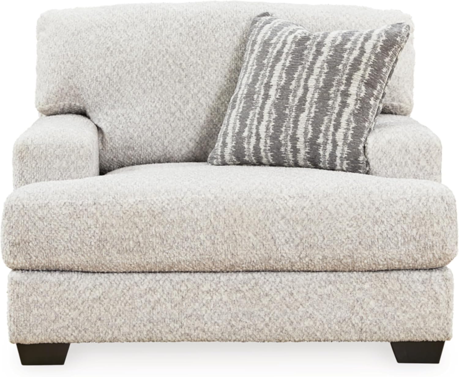 This oversized chair speaks to those drawn to fresh, contemporary style with richly neutral appeal. Wrapped in a wonderfully plush fabric loaded with multi-tonal interest, the on-trend chair has a warm, welcoming charm. Kick back, relax and settle in for comfort with this cool addition for modern spaces.