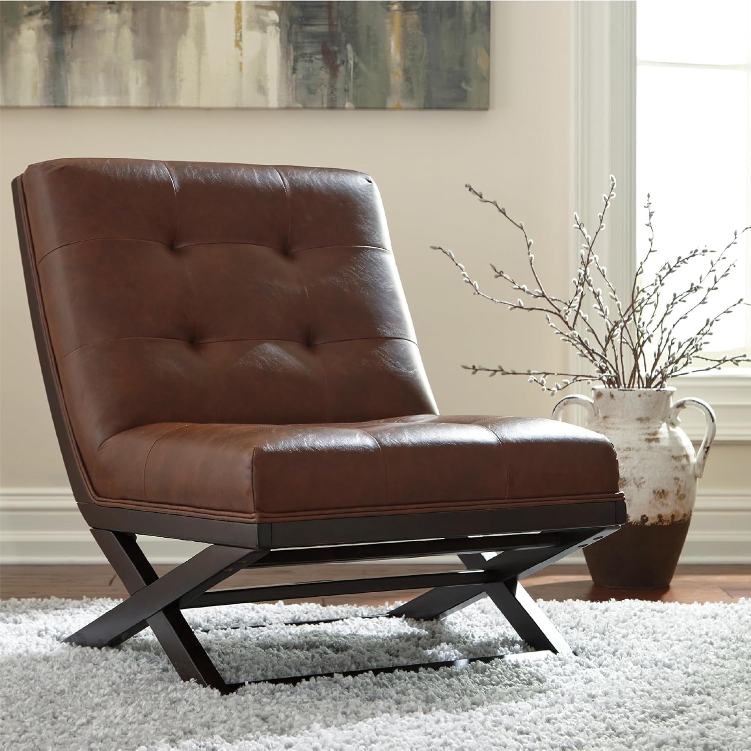 Signature Design by Ashley Sidewinder Mid-Century Modern Faux Leather Accent Chair, Brown