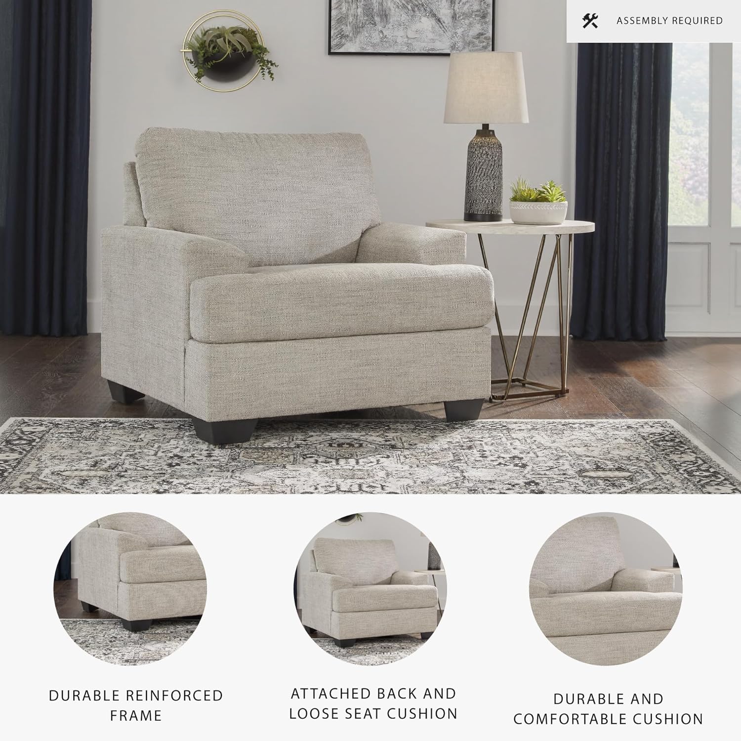 Signature Design by Ashley Vayda Casual Upholstered Chair, Light Gray