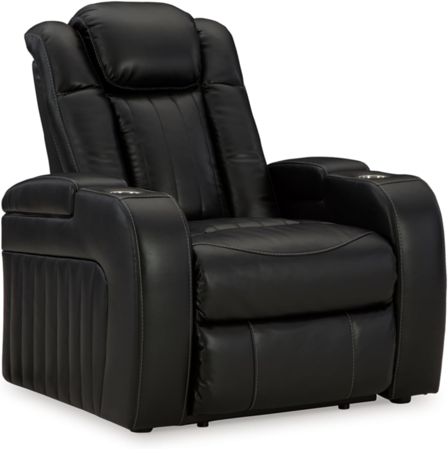 Signature Design by Ashley Wolfridge Contemporary Faux Leather Upholstered Power Recliner with Adjustable Headrest, USB Ports and 2 Cup Holders, Dark Brown