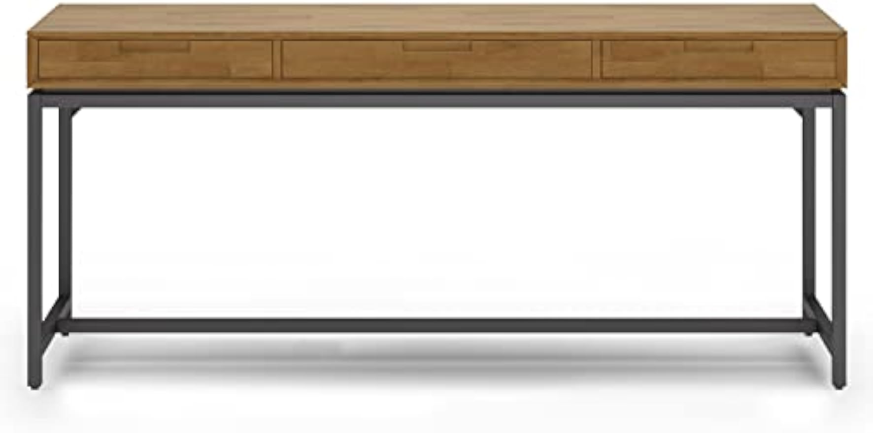 SIMPLIHOME Banting Desk - 72-Inch Wide Solid Hardwood and Metal Writing Desk in Medium Saddle Brown, Modern Industrial Home Office Computer Table for Study with 2 Drawers and Flip-Down Keyboard Tray