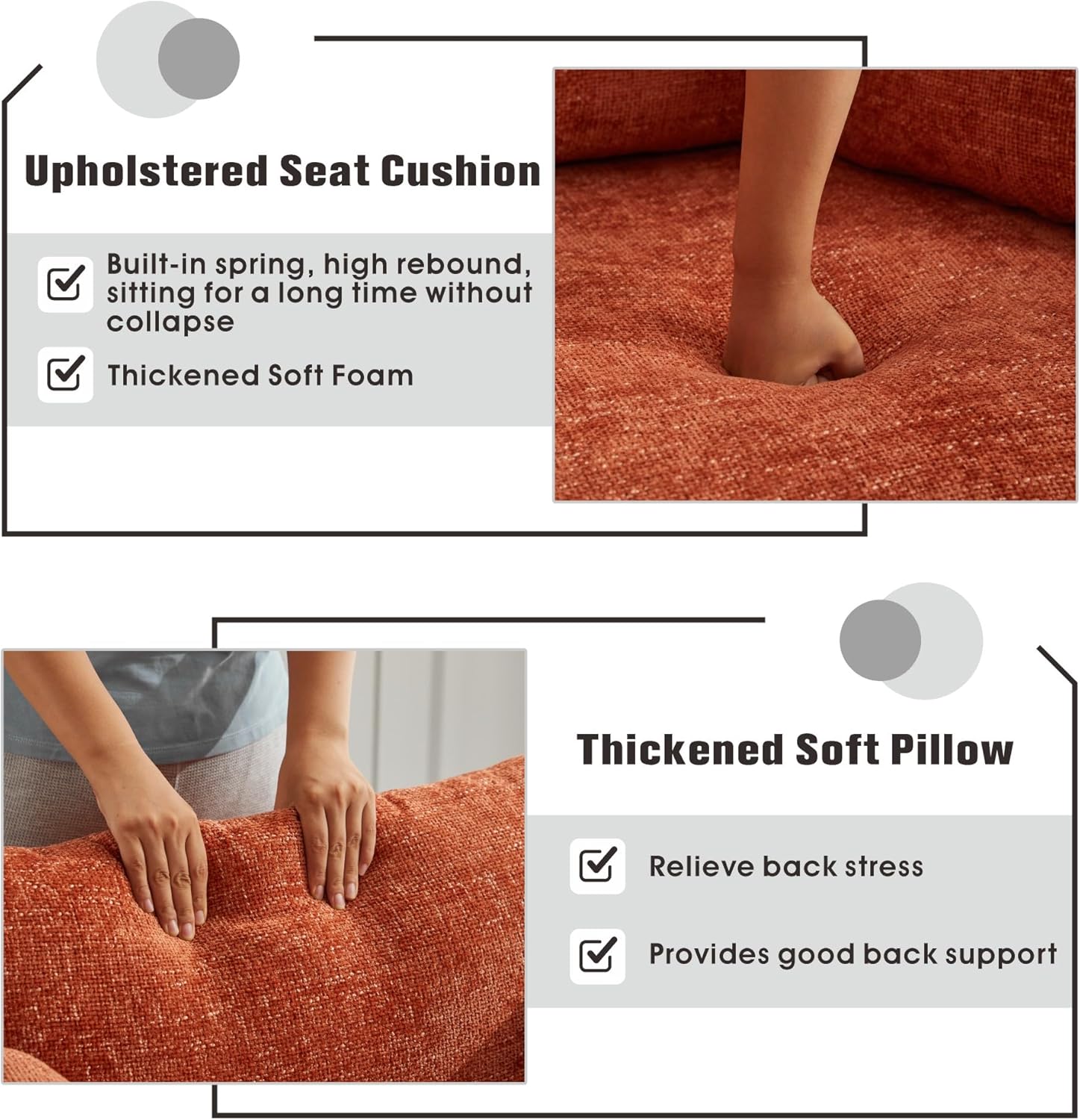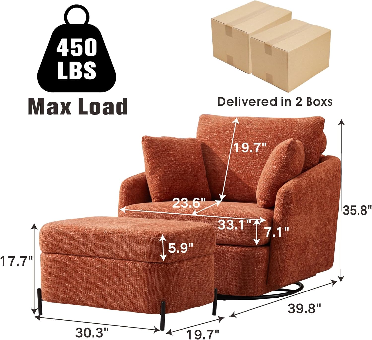 Sinzho & Wiyfun Oversized Swivel Accent Chair with Ottoman Upholstered Large Chenille Arm Chair with 3 Pillows for Living Room, Orange