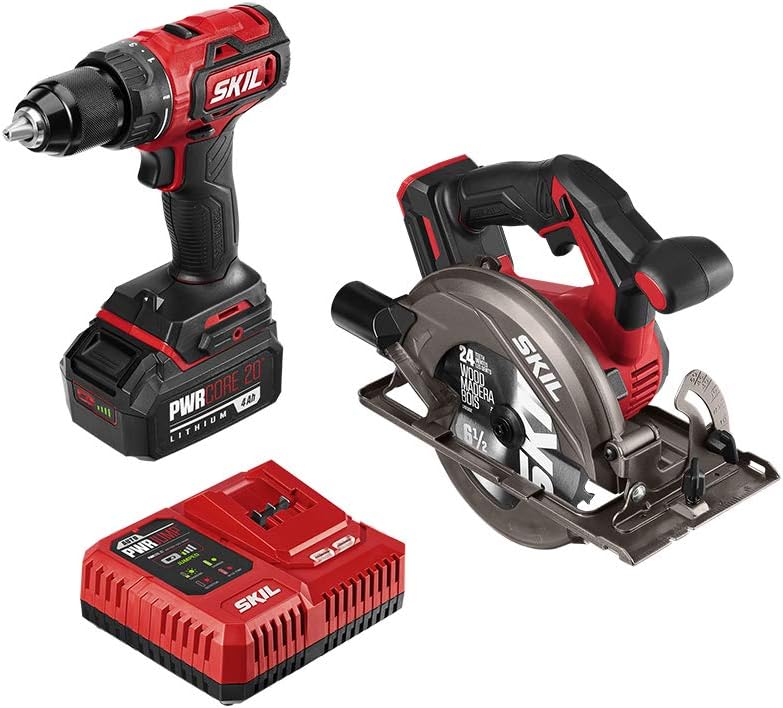 SKIL 2-Tool Combo Kit: PWR CORE 20 Brushless 20V Cordless Drill Driver and Cordless Circular Saw Includes 4.0Ah Lithium Battery and PWRJump Charger - CB743901