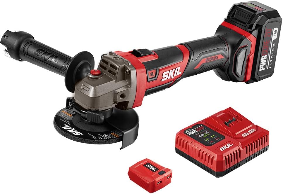 SKIL PWR CORE 20 Brushless 20V 4-1/2 Angle Grinder, Included 5.0Ah Battery, PWRJump Charger and PWRAssist USB Adapter - AG2907-1A