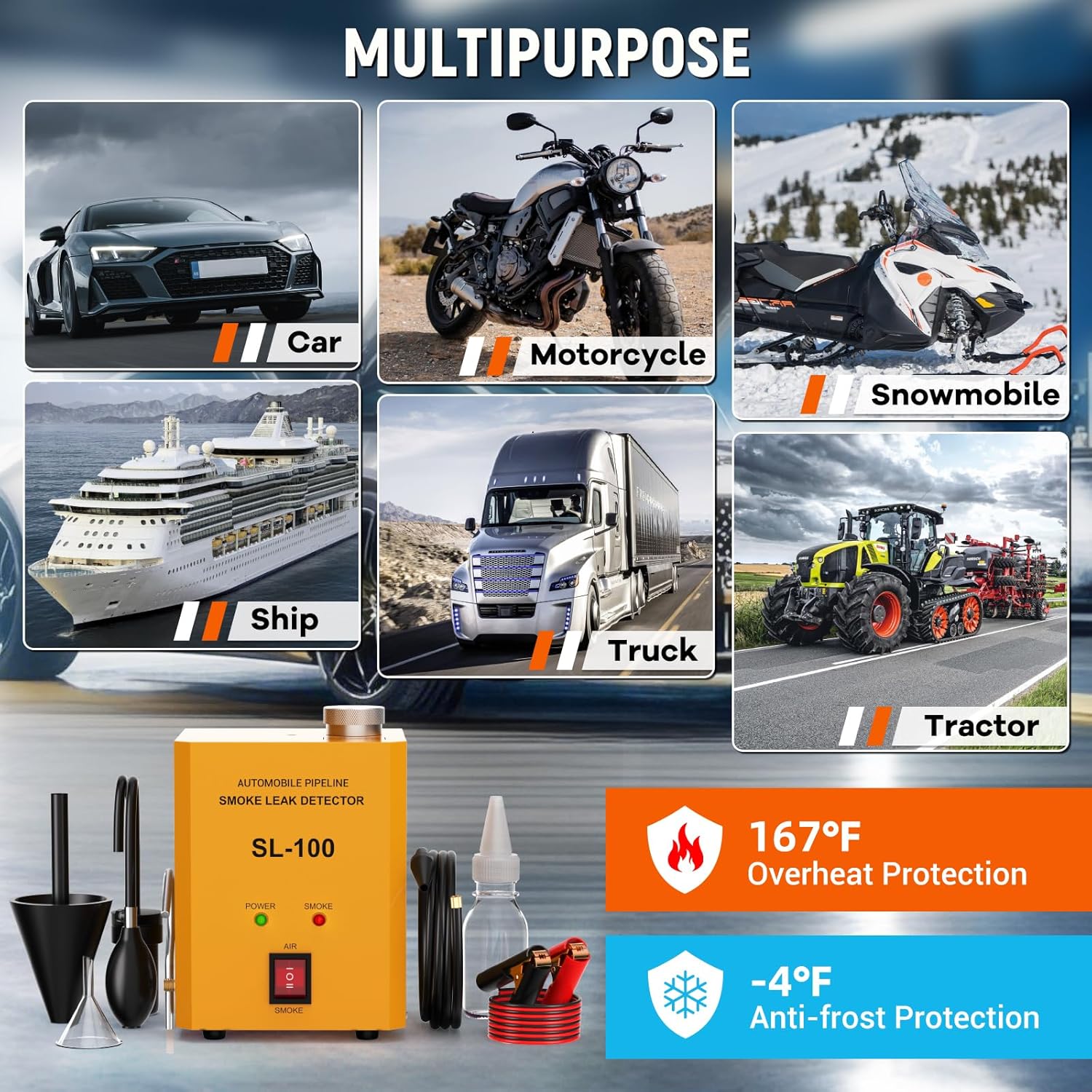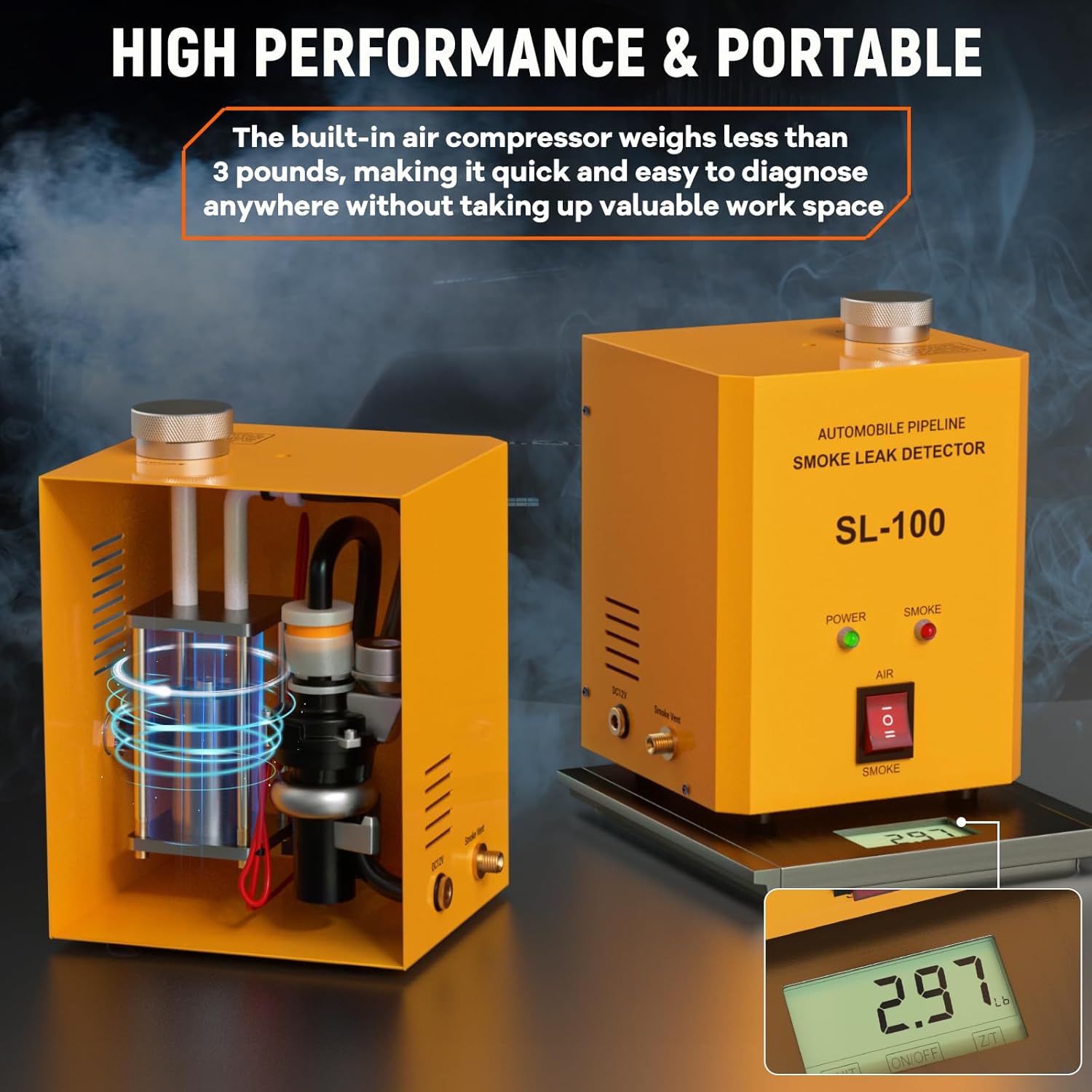 SL100 Smoke Machine Automotive Leak Detector, 12L/Min High Output Flow, Built-in Air Pump Evap Vacuum Diagnostics Tester, Fuel Diagnostic Pipe System Automotive Smoke Machine for Car