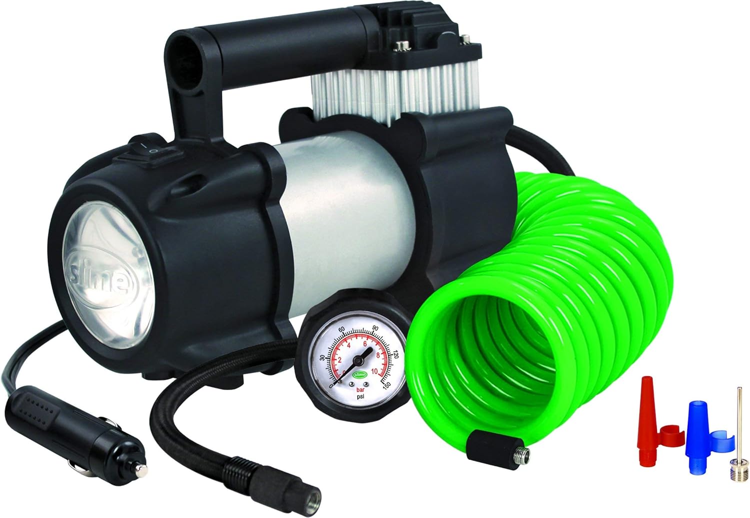 Slime 40031 Tire Inflator, Portable Car, SUV, 4x4 Air Compressor, Pro Power, Heavy Duty, with Analog 150 psi Dial Gauge, Long Hose and LED Light, 12V, 3 min inflation